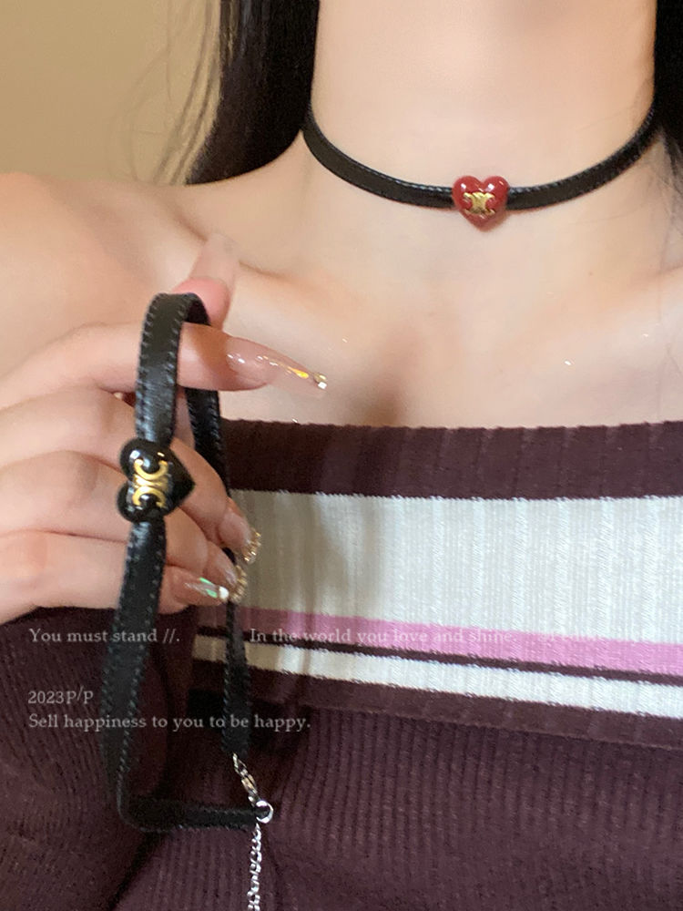 European and American style black men's neck chain hip-hop punk rock pu leather collar women's neck strap skull rivet necklace jewelry