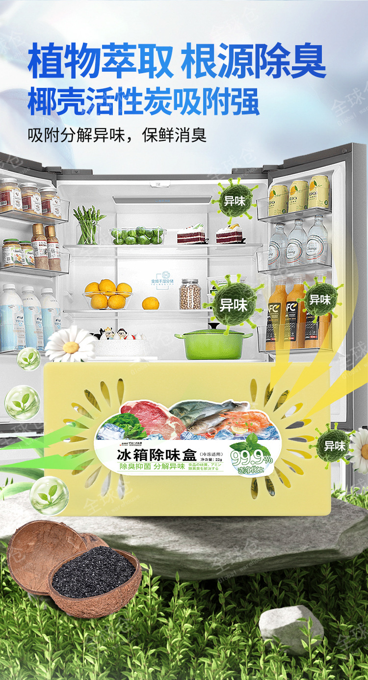 Global warehouse refrigerator deodorant coconut shell activated carbon freezer deodorization fresh odor removal household special deodorization