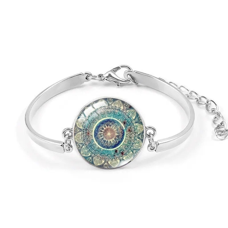 Cross-border New Accessories Mandala Yoga Time Gem Necklace Fashion Glass Pendant Necklace European and American Jewelry