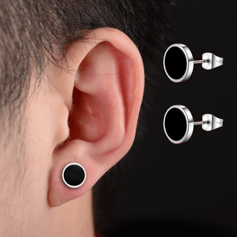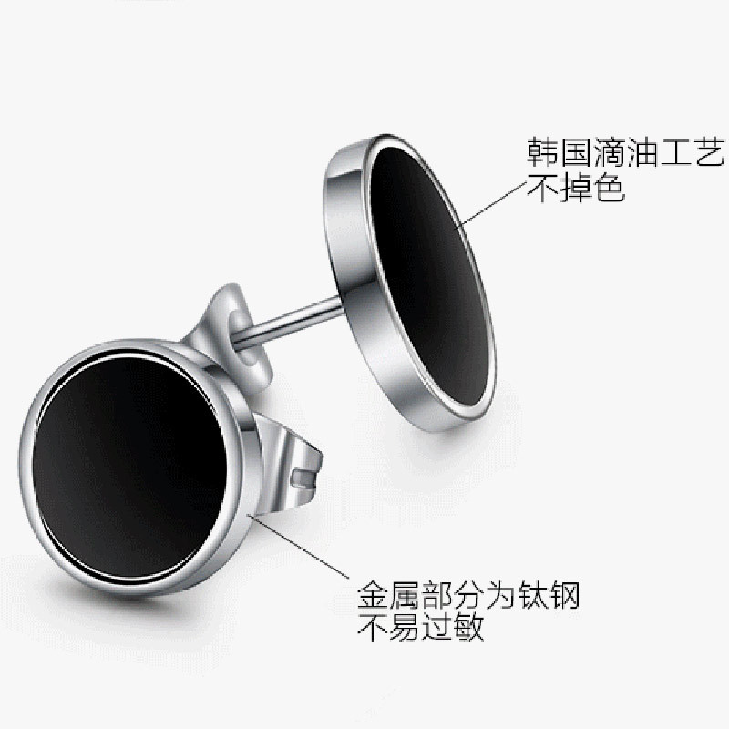 Titanium Steel Earrings for Men, Fine Needle Oil Dripping, Round Stylish, Versatile Earrings, Men's Export Jewelry, Aliexpress Hot, Sweet and Cool Style