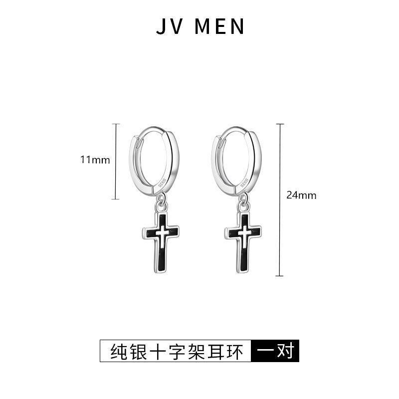 Sterling Silver Earrings Men's High-end Simple Black Cross Earrings Single Cold Style Trendy Brand All-match Men's Earrings