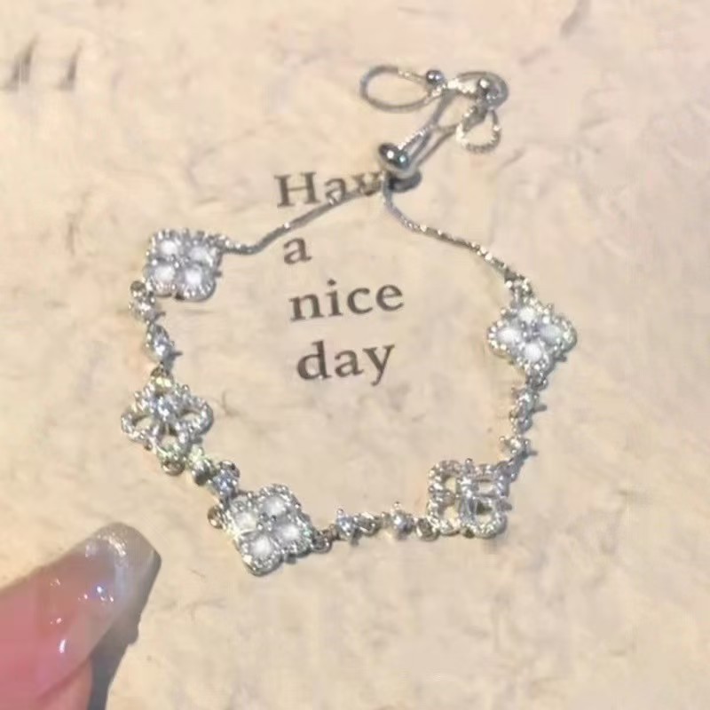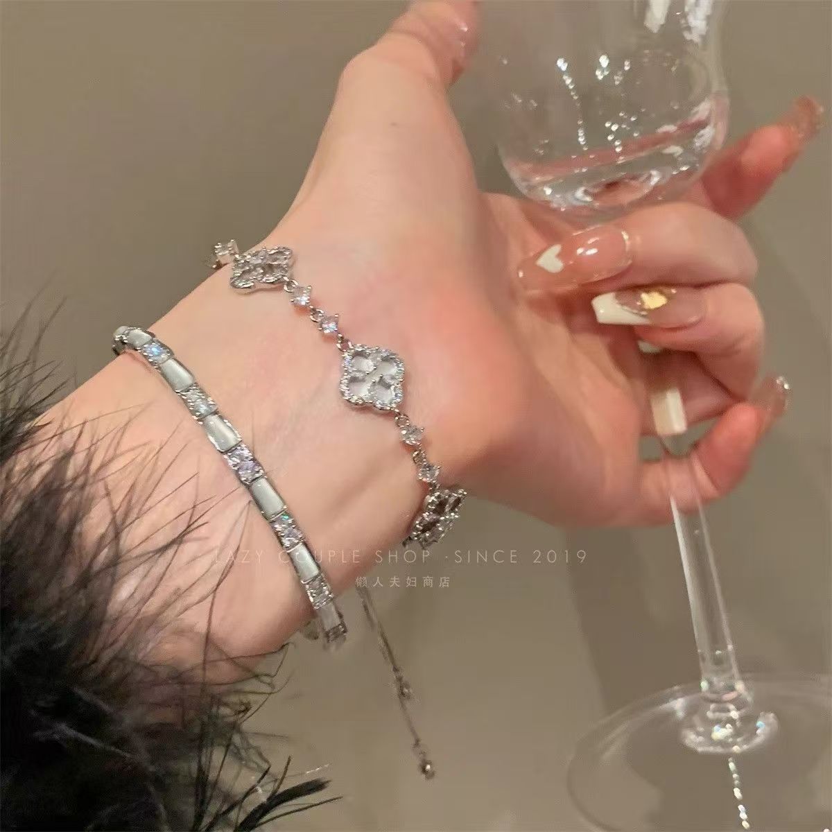 The daughter of a rich family is the sense of sight! Four-leaf Flower Shell Zircon Pull Bracelet Exquisite Light Luxury Socialite Cat's Eye Bracelet