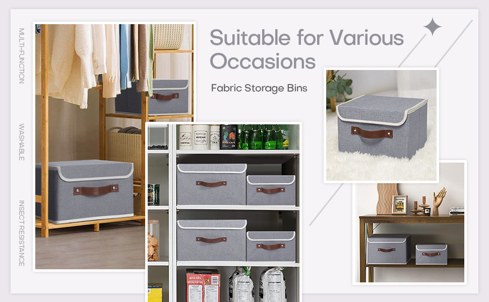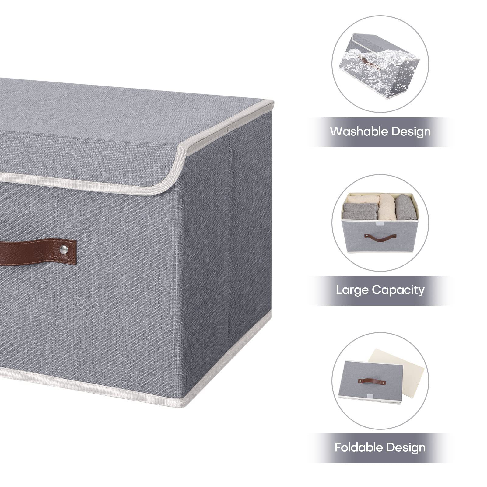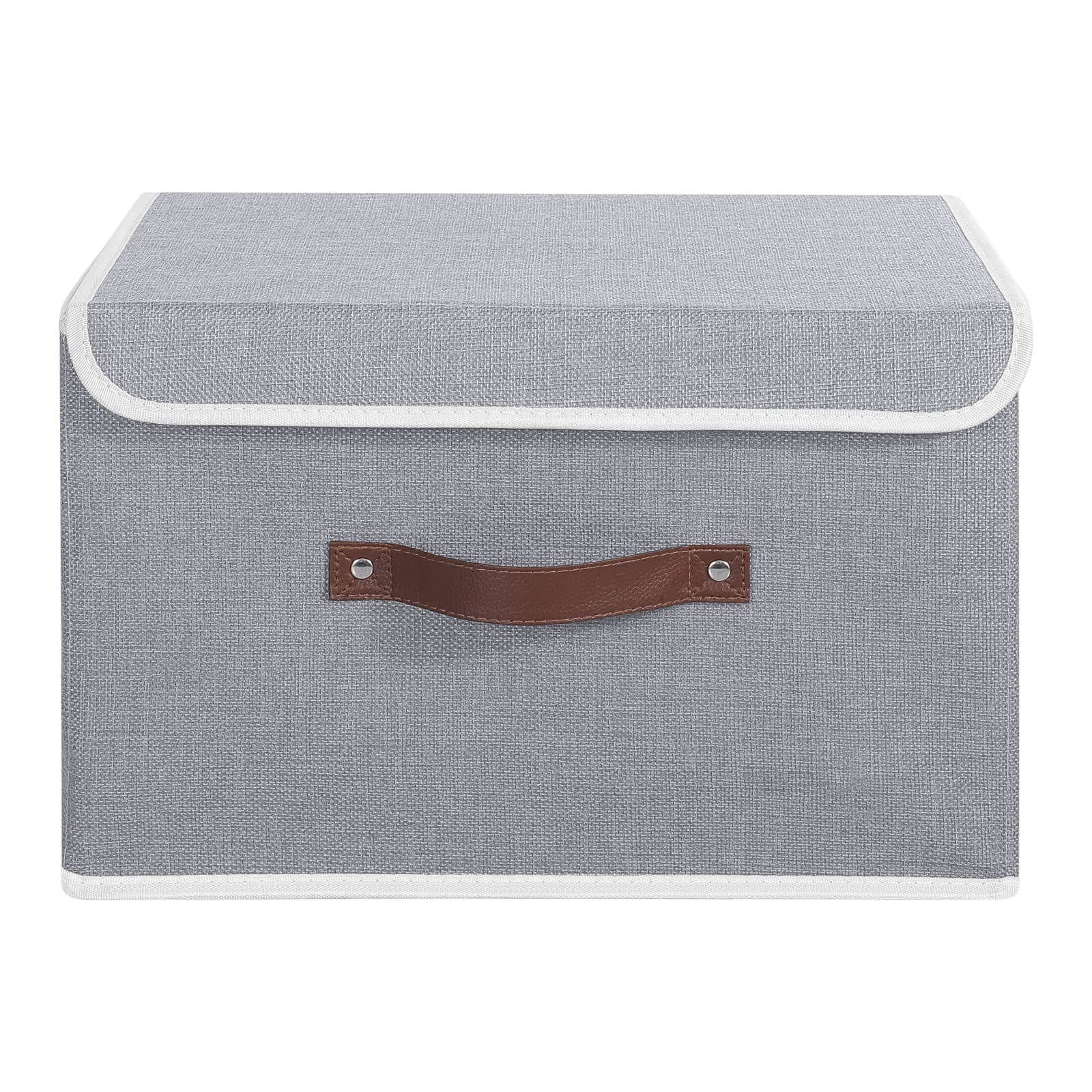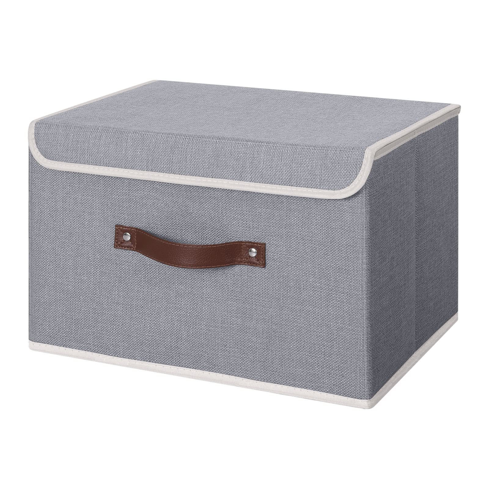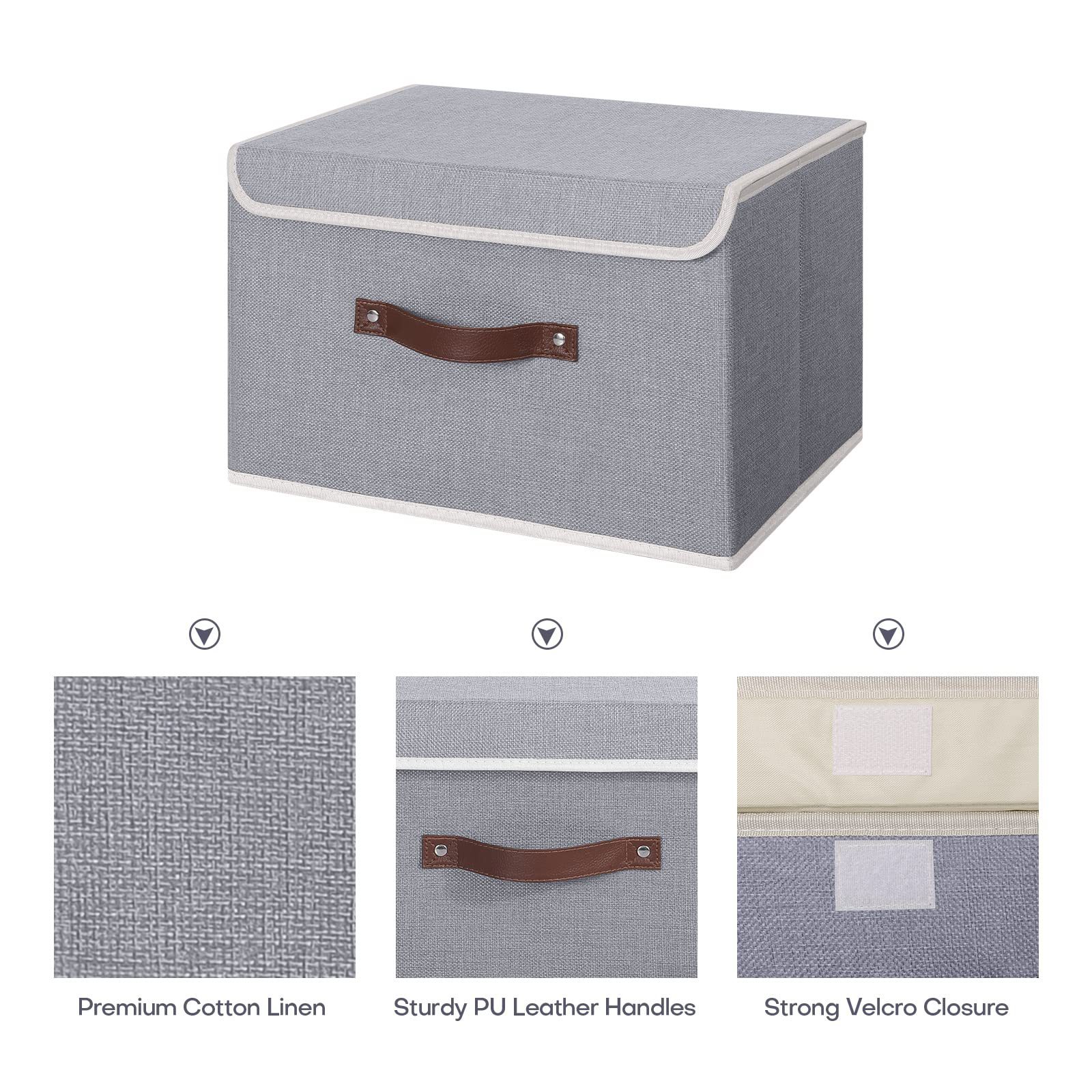 Storage Box with Lid PU Leather Handle PP Plastic Board Foldable Cotton Linen Fabric Wardrobe Storage