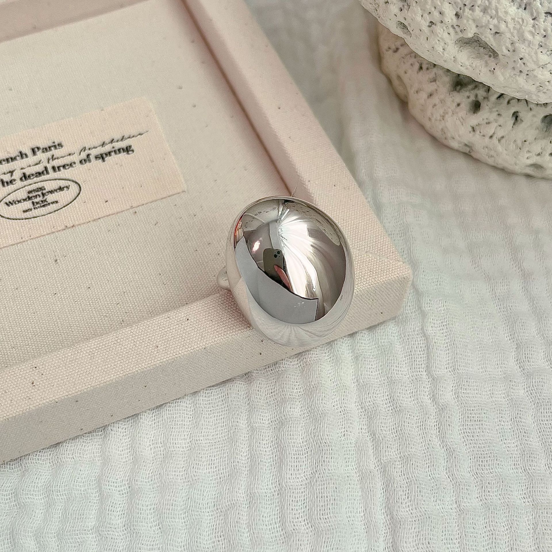 European and American Metal Glossy Stereo Simple Oval Ring Women's Niche Design High-End Exaggerated Unique Hand Jewelry Ring