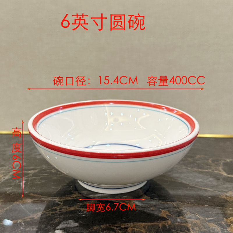 Color: 6inch red line round bowl