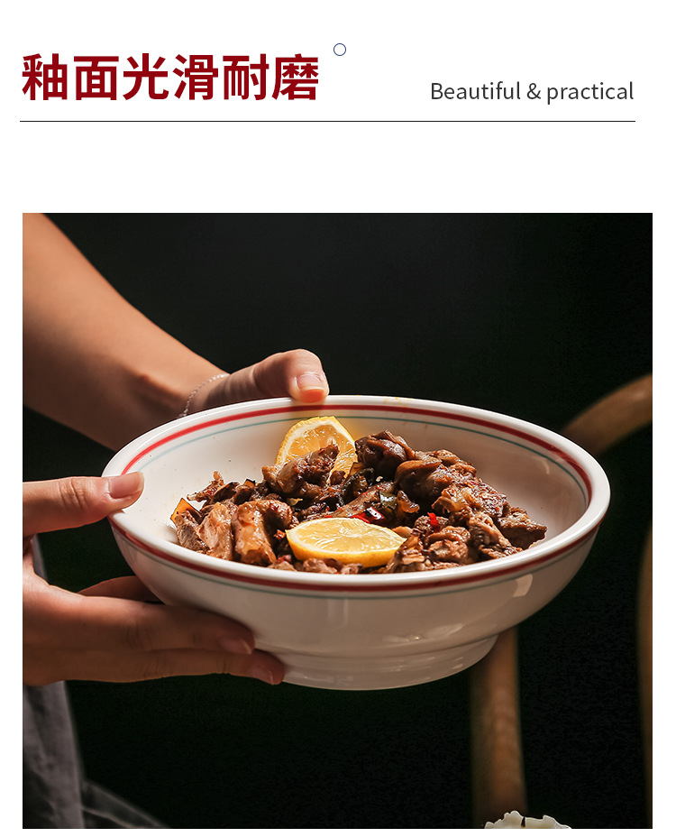 Color: Chinese red 8inch thick edge reverse bowl 390ml a must-have for hunan vegetable restaurant