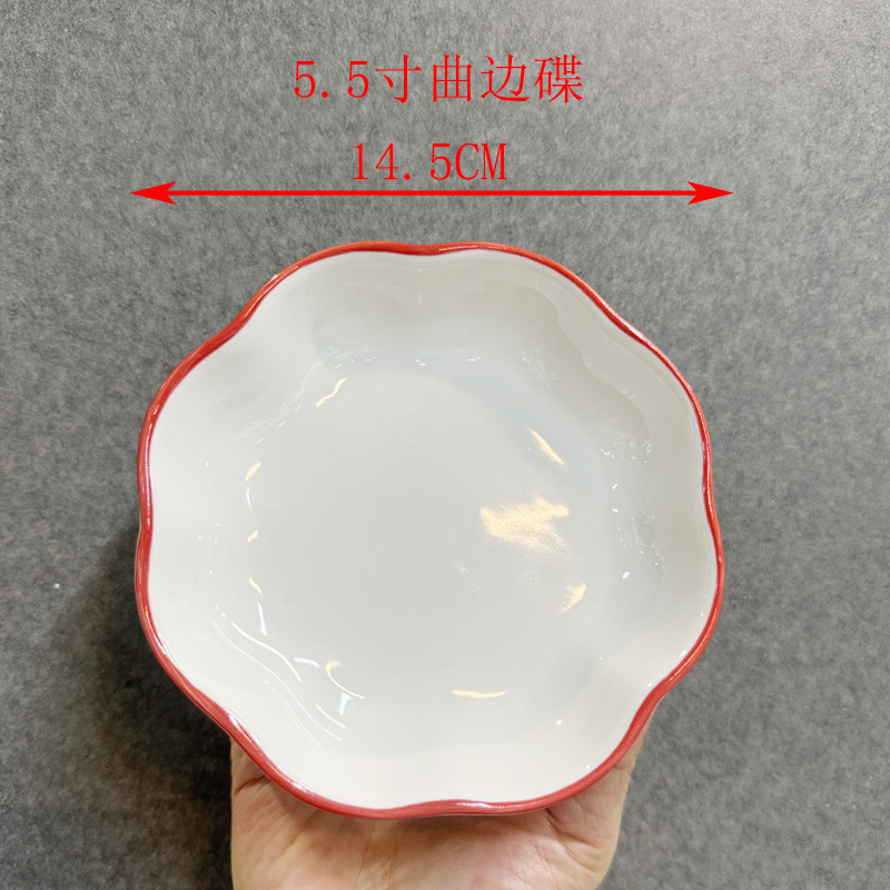 Color: 5.5inch chinese red curved edge dish