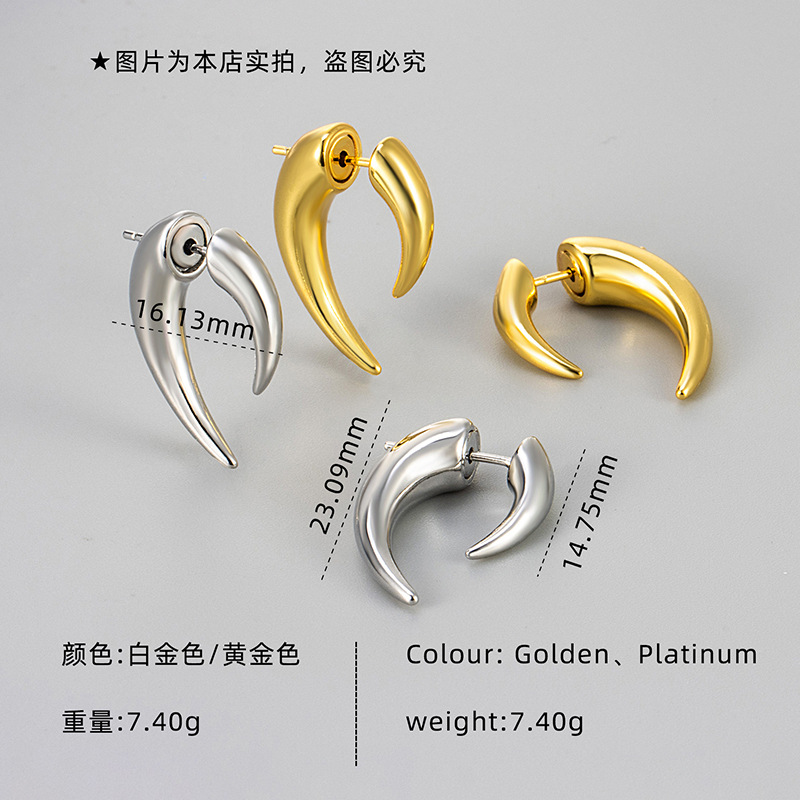 Europe and the United States cross-border fashion sweet cool color double-sided spike earrings crescent earrings horns new cool earrings for women and men