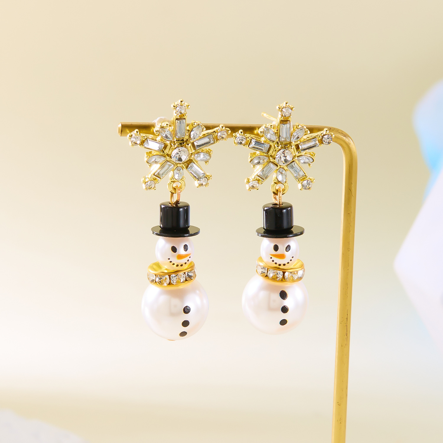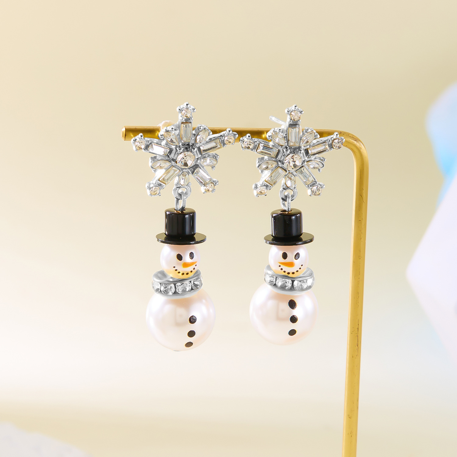 Christmas cross-border earrings fashion Joker European and American new Christmas diamond snowflake pearl hat snowman earrings women