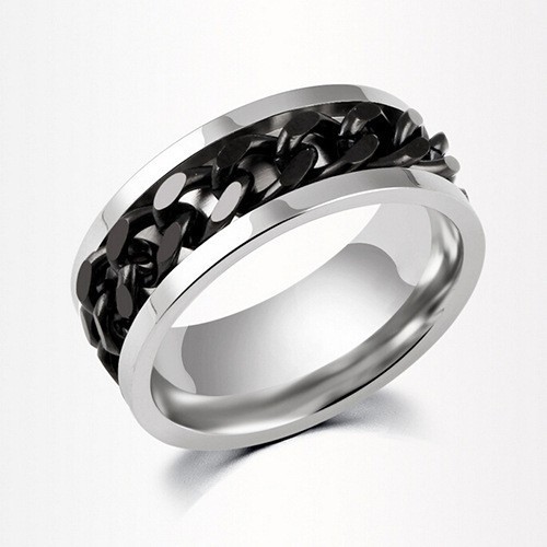 Cross-border Stainless Steel Jewelry Pressure Pattern Rotatable Chain Open Wine Bottle Titanium Steel Ring Men's Open Bottle Ring