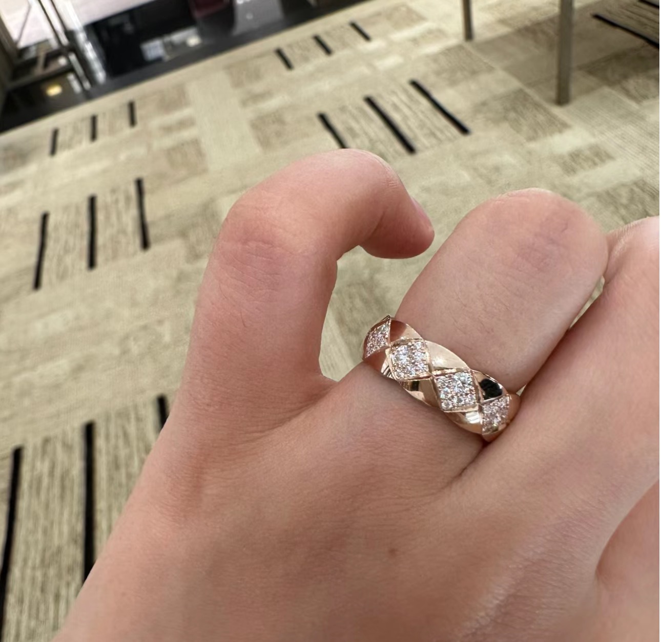 Europe and the United States simple small fragrant style diamond 2024 wide version of the ring micro diamond women's all-match red ring CNC half diamond