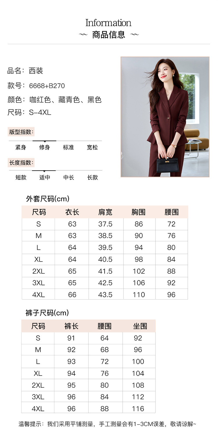 Fashion Elegant Suit suit Women's Slim-fit Small Professional Wear Front Desk Jewelry Store Dress Autumn and Winter Work Clothes