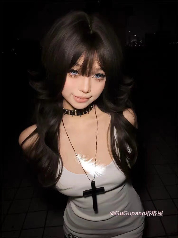 Retro Dark Wooden Cross Pendant Set Necklace Gothic Friends Y2K Subculture Versatile Clavicle Chain