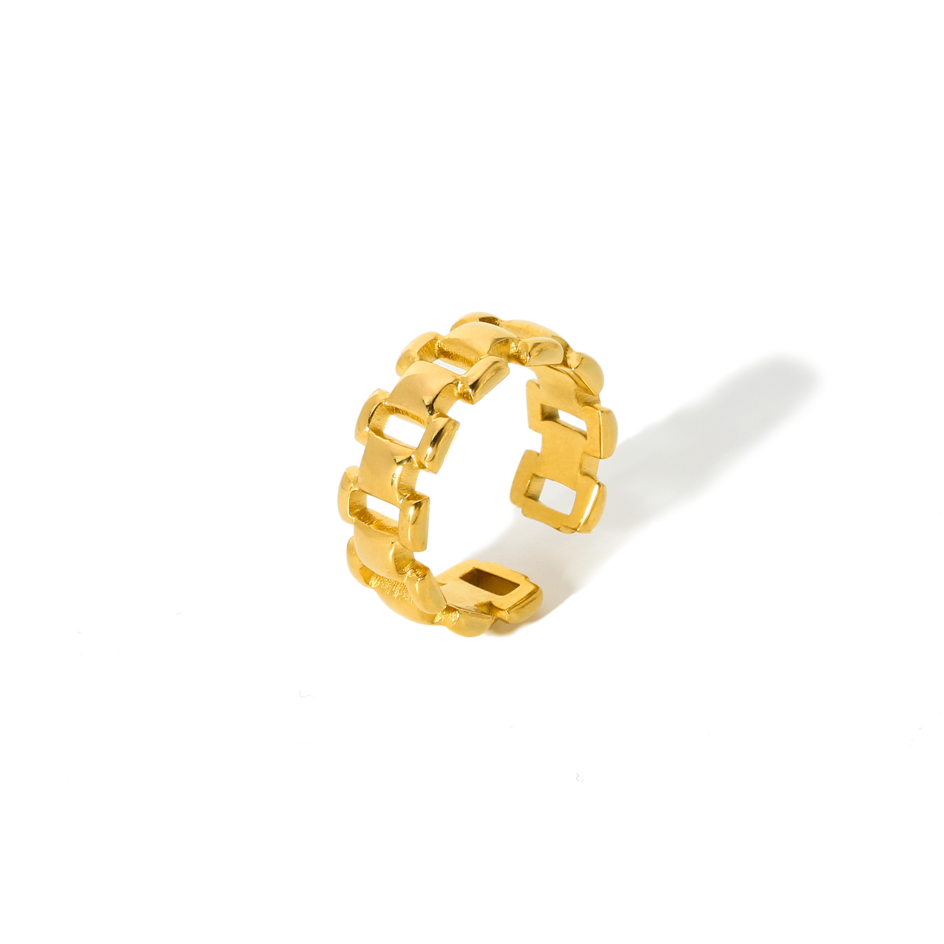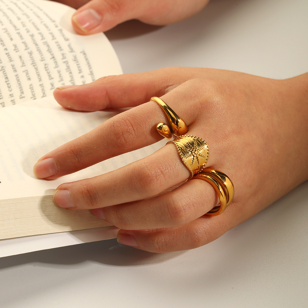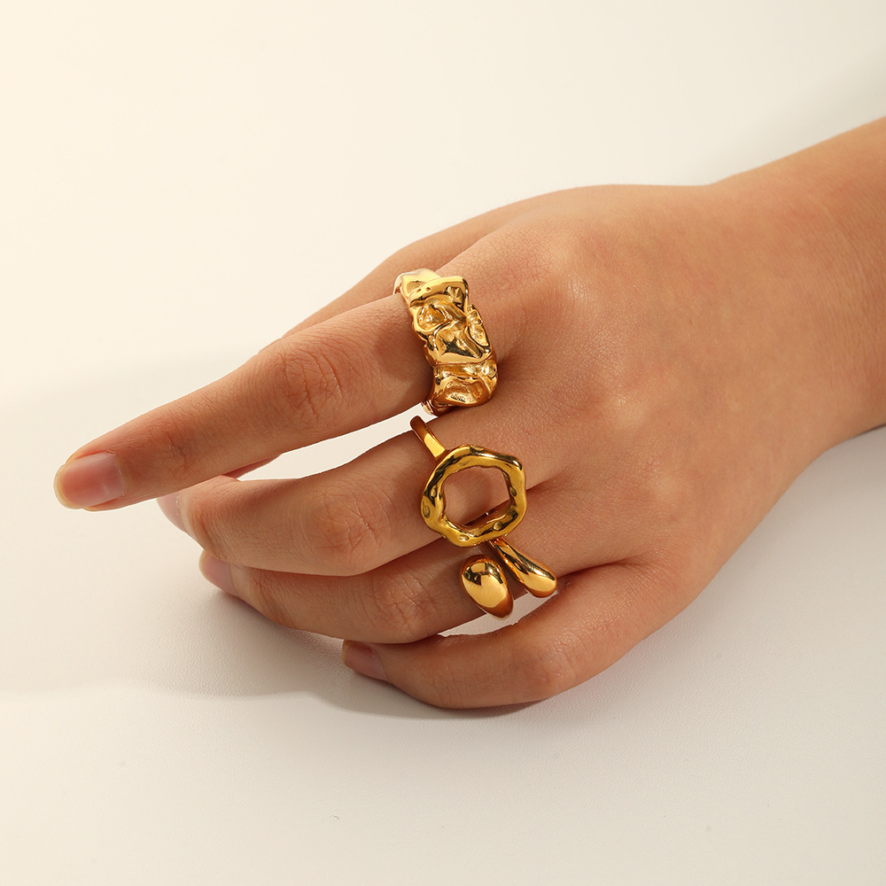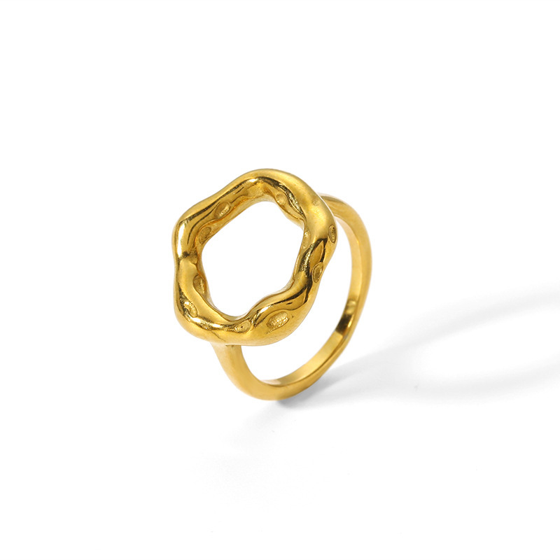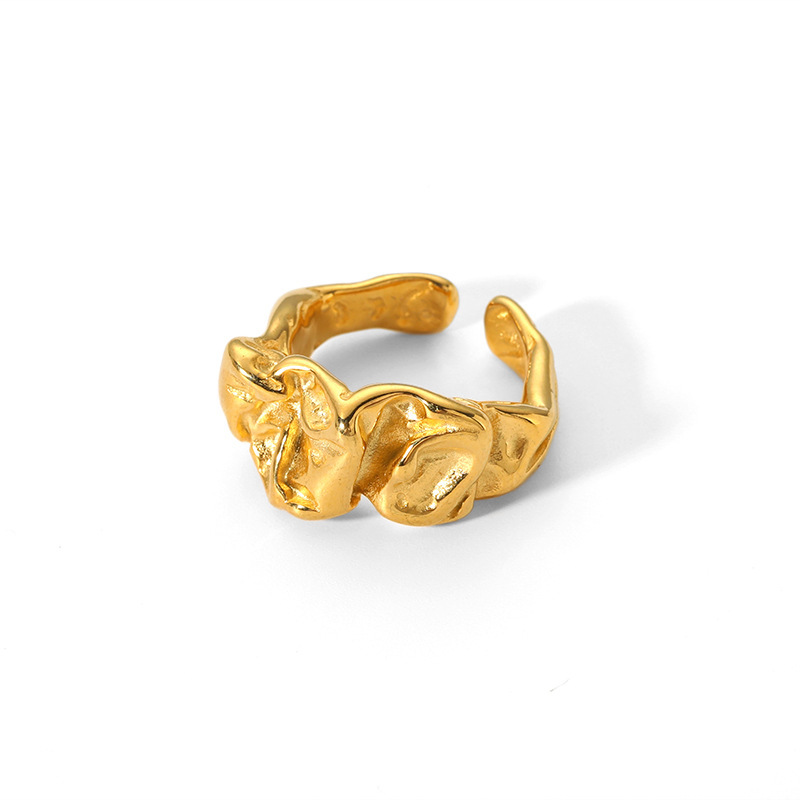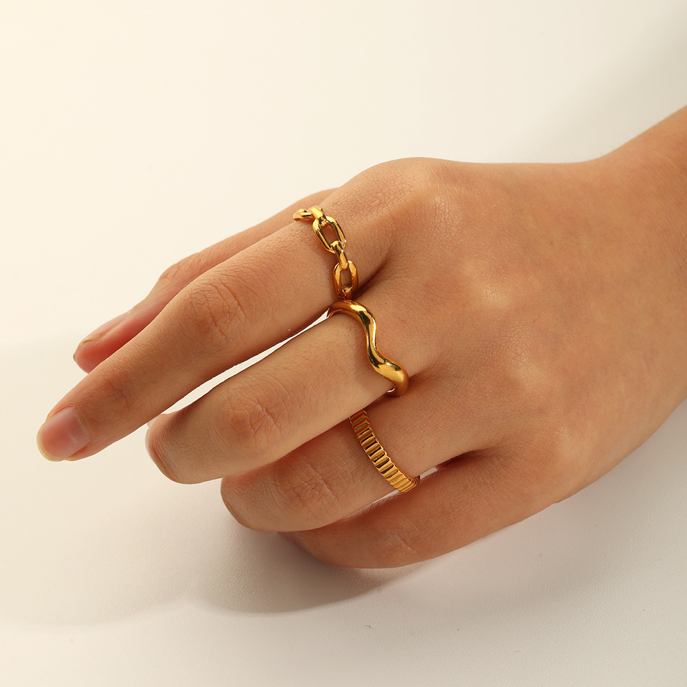 INS Wind Net Celebrity Diamond 18k Gold-plated Titanium Steel Ring Women's Niche High-grade Light Luxury Geometric Wave Stainless Steel Ring