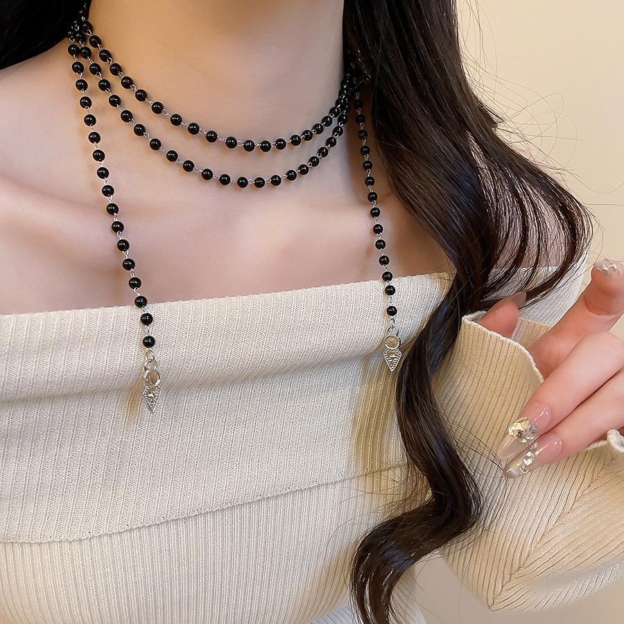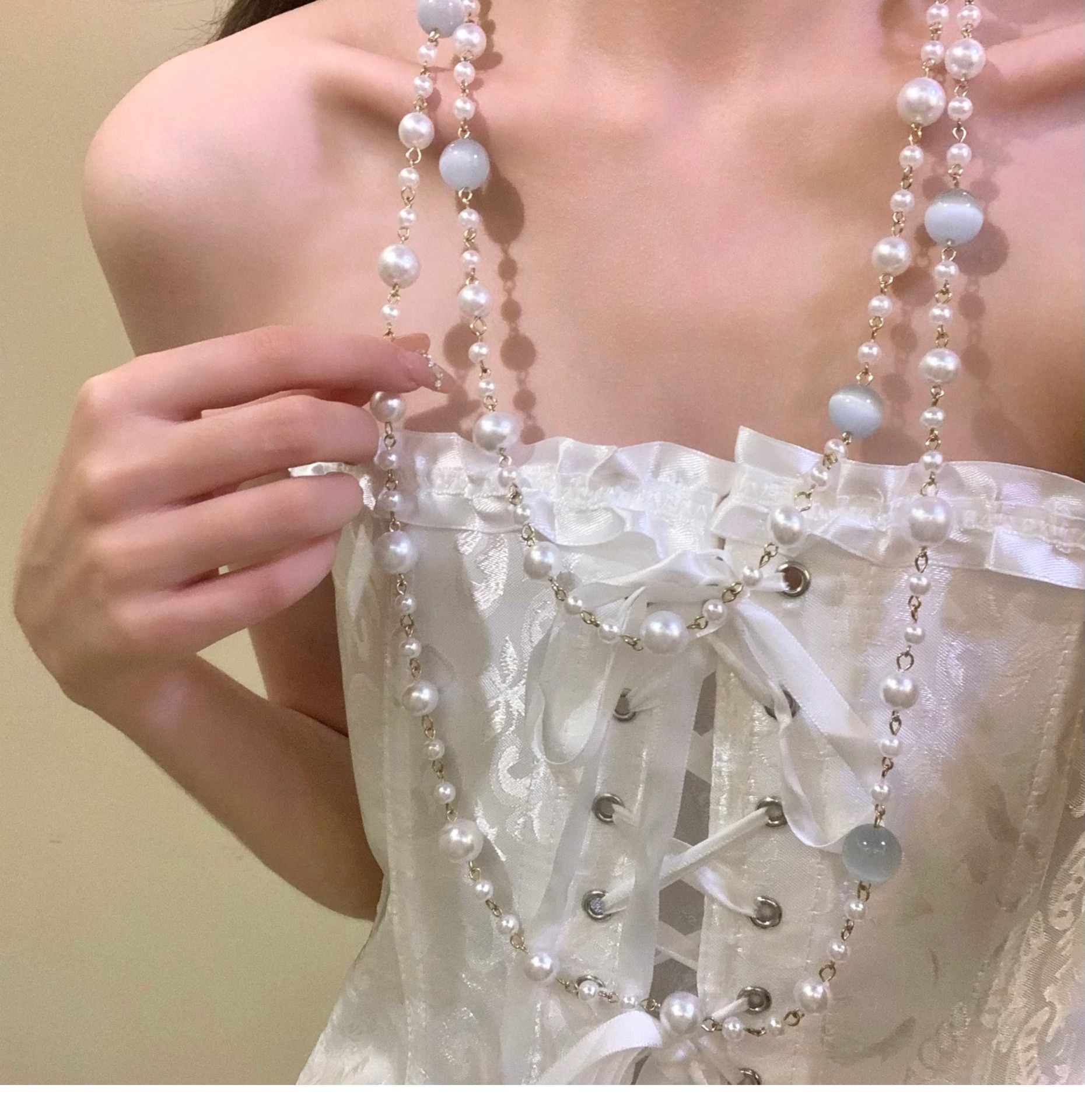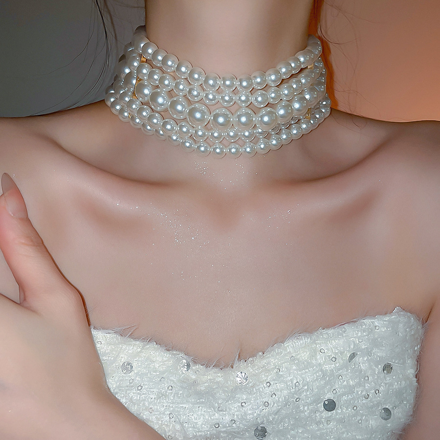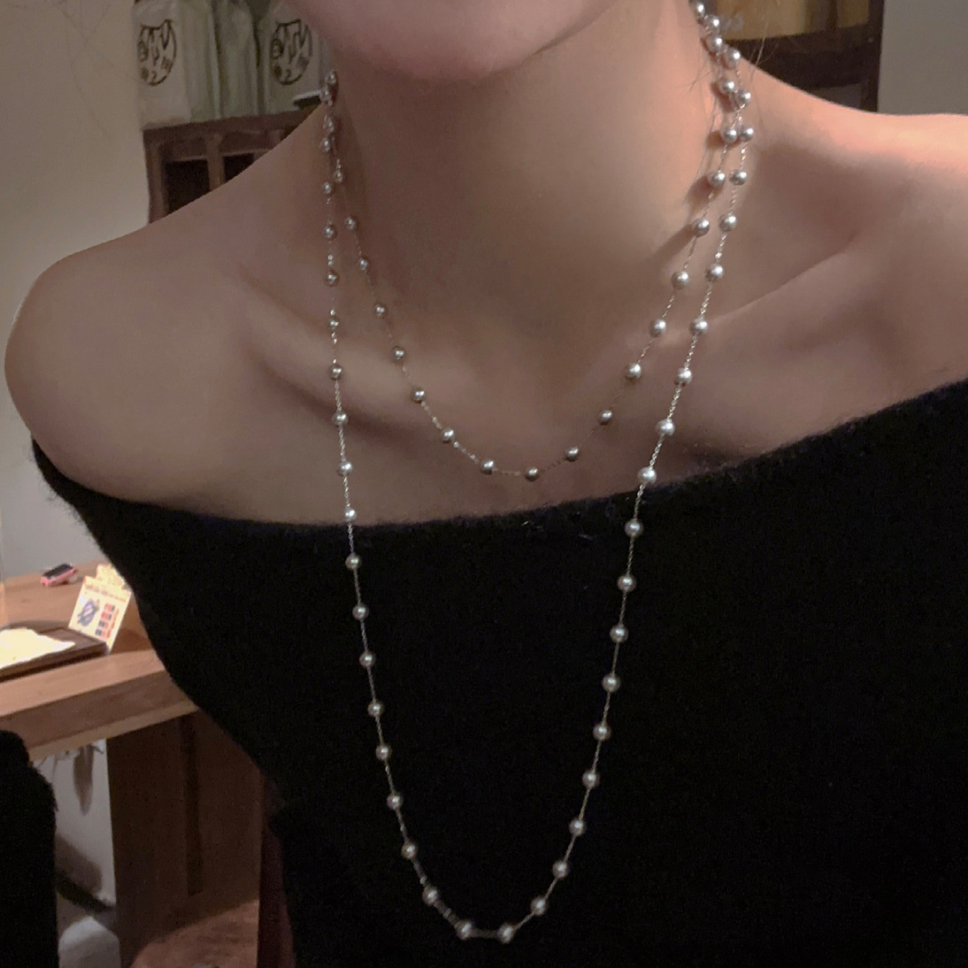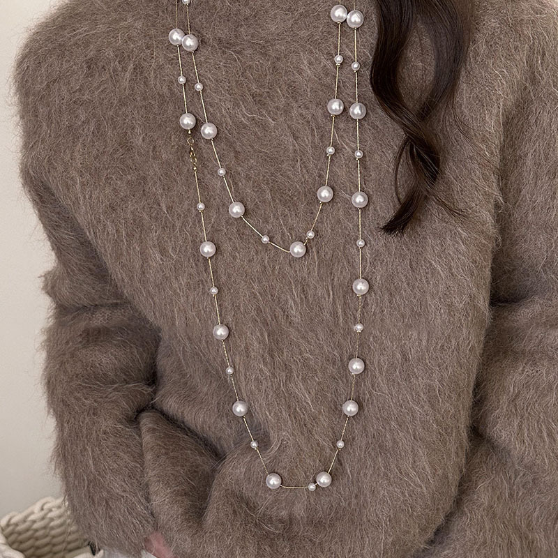 New Artificial Pearl Double Layer Stacked Necklace Cross-border Exquisite Fashion Clavicle Chain French Elegant Light Luxury Woolen Chain