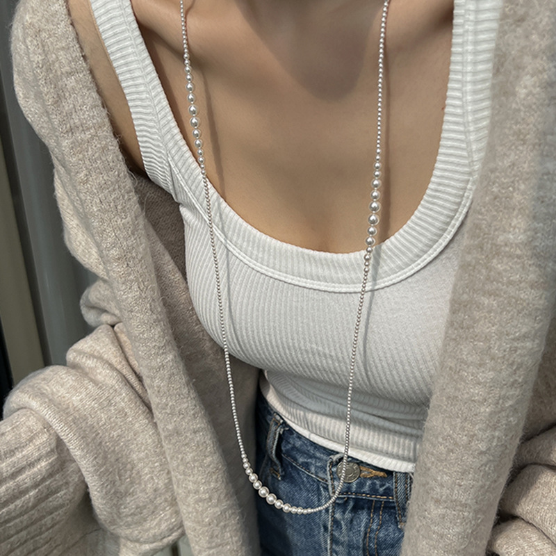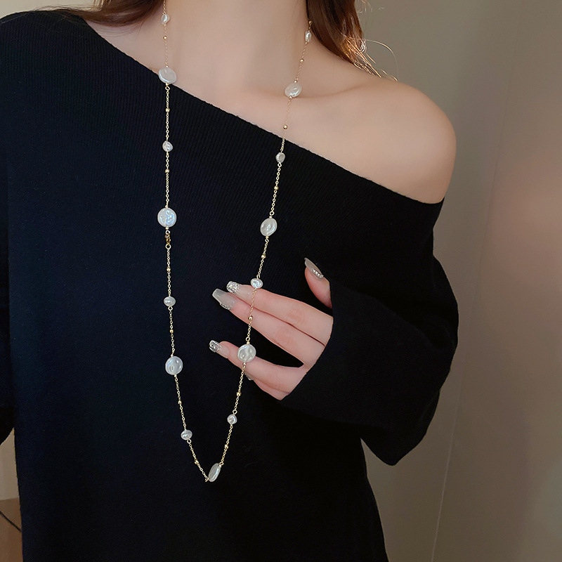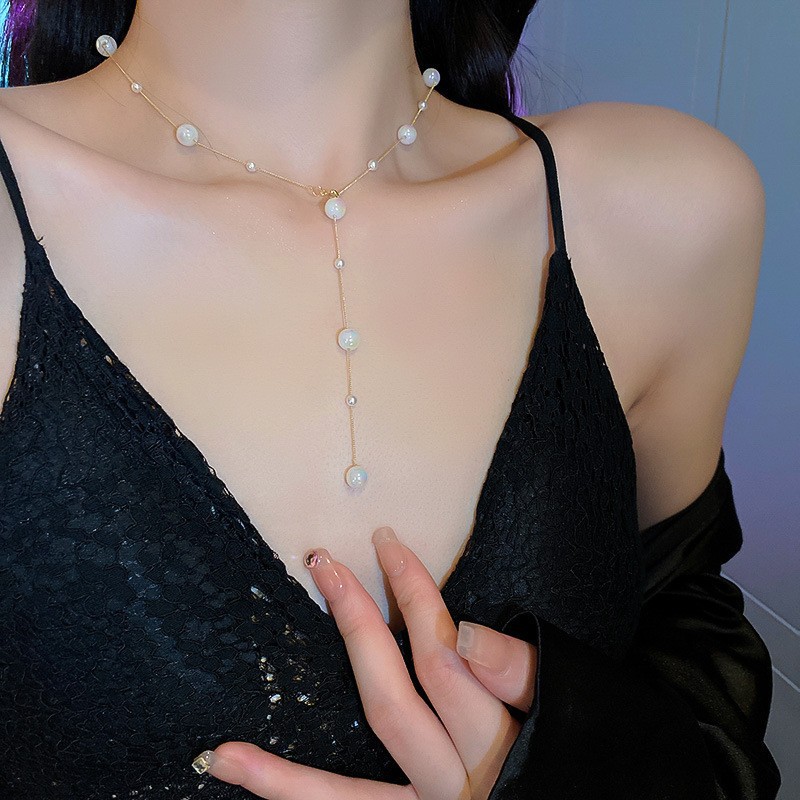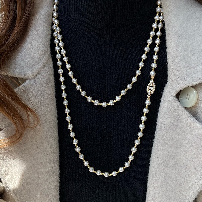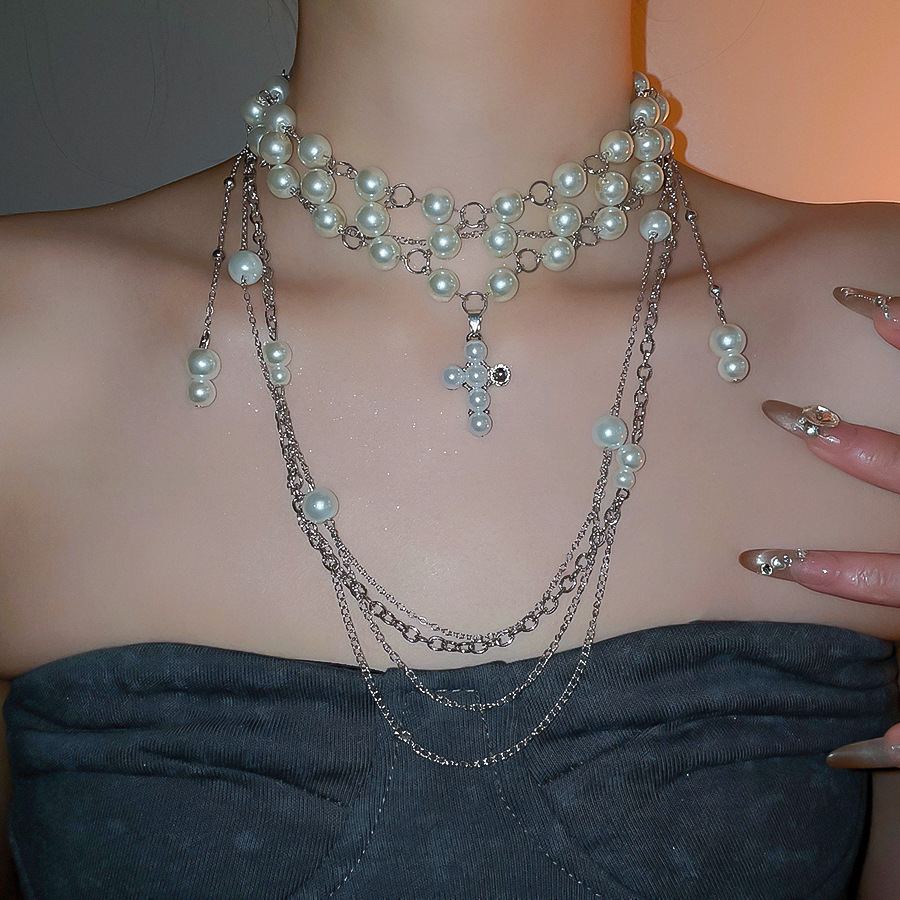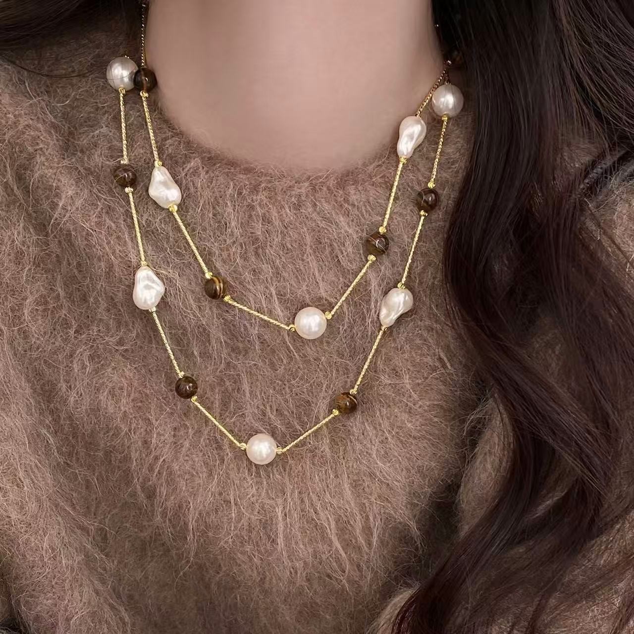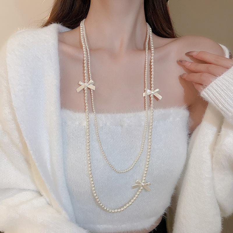 New Artificial Pearl Double Layer Stacked Necklace Cross-border Exquisite Fashion Clavicle Chain French Elegant Light Luxury Woolen Chain