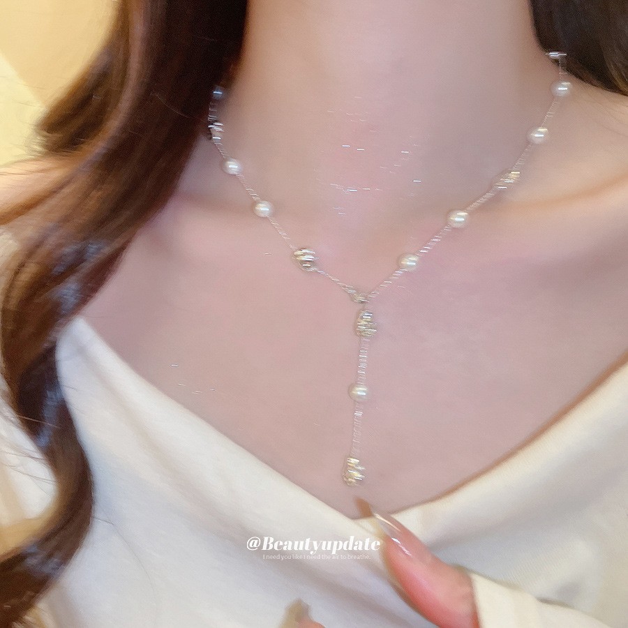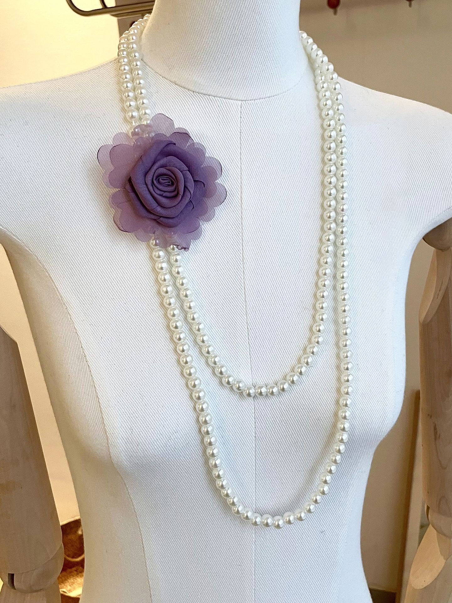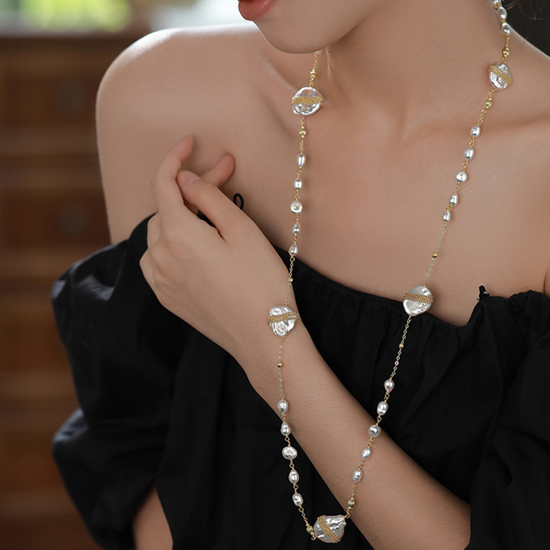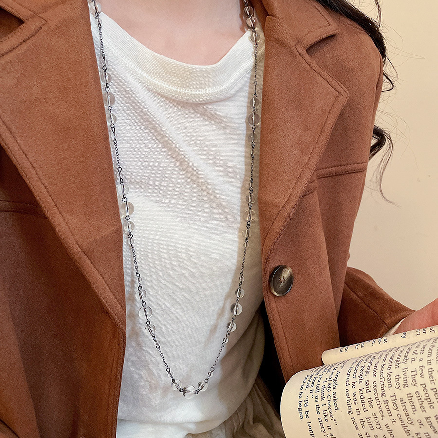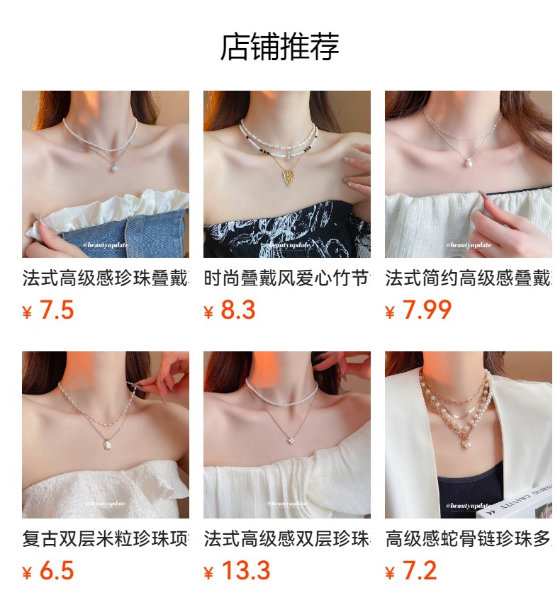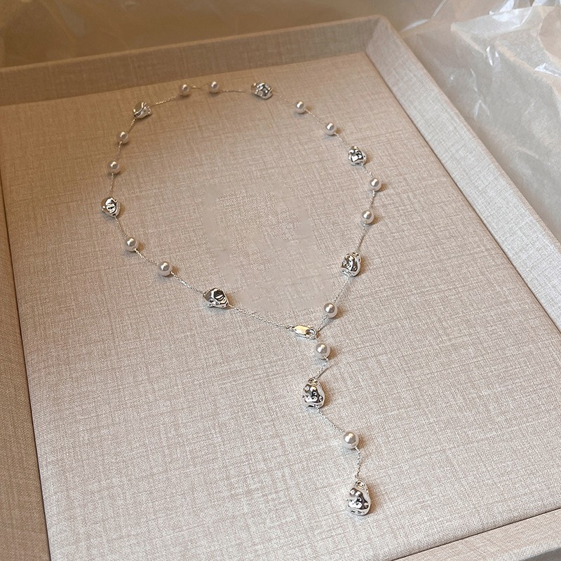 New Artificial Pearl Double Layer Stacked Necklace Cross-border Exquisite Fashion Clavicle Chain French Elegant Light Luxury Woolen Chain