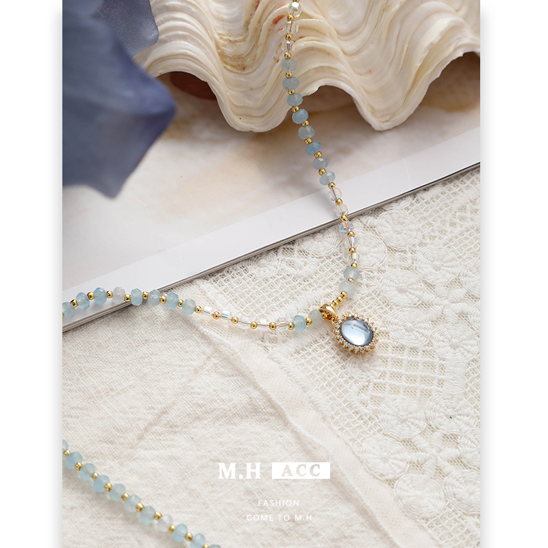 Color: Aquamarine necklace-xlhj240823a01