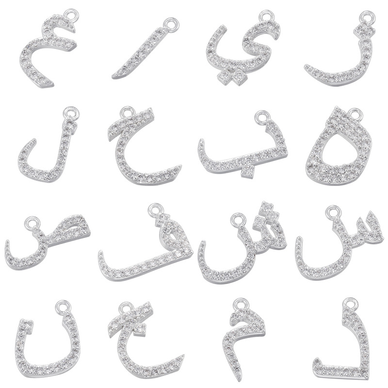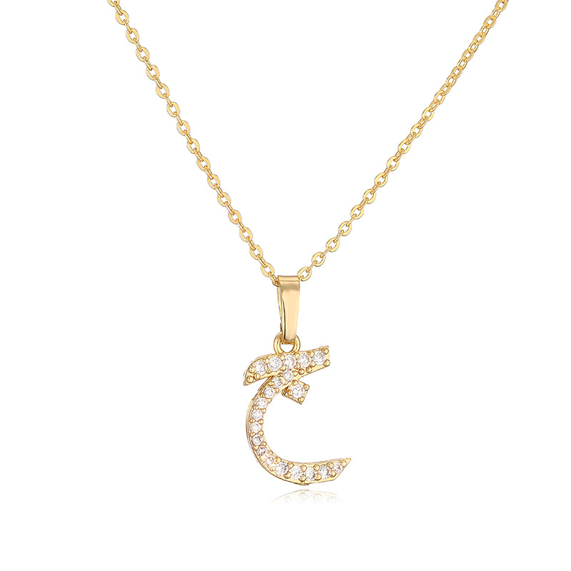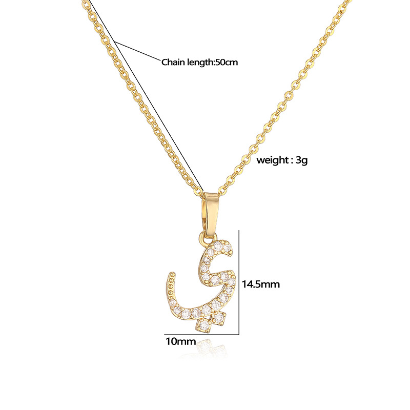 HECHENG Jewelry European and American Cross-border Copper Zirconium Arabic Letter Pendant Necklace Personality Hip Hop Letter Necklace Chain