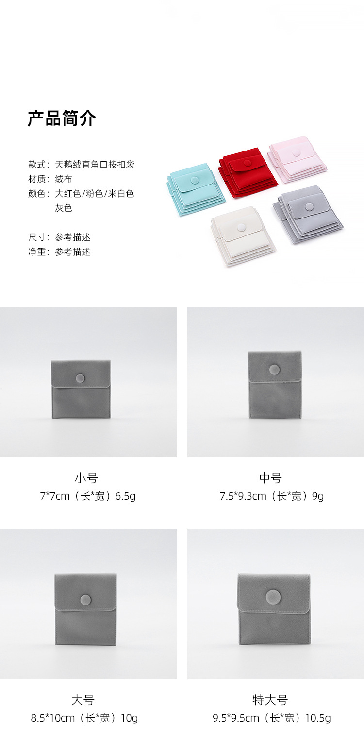 Specification model: Gray-velvet right angle mouth; 7.5*9.3cm
