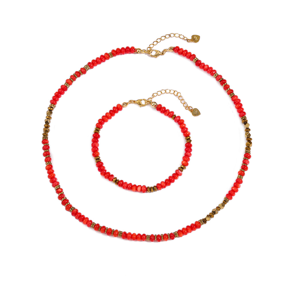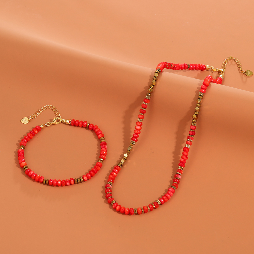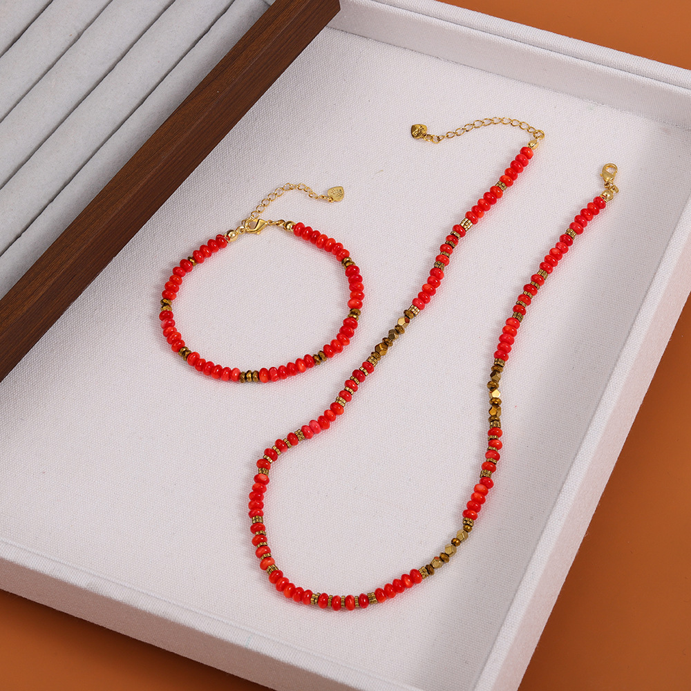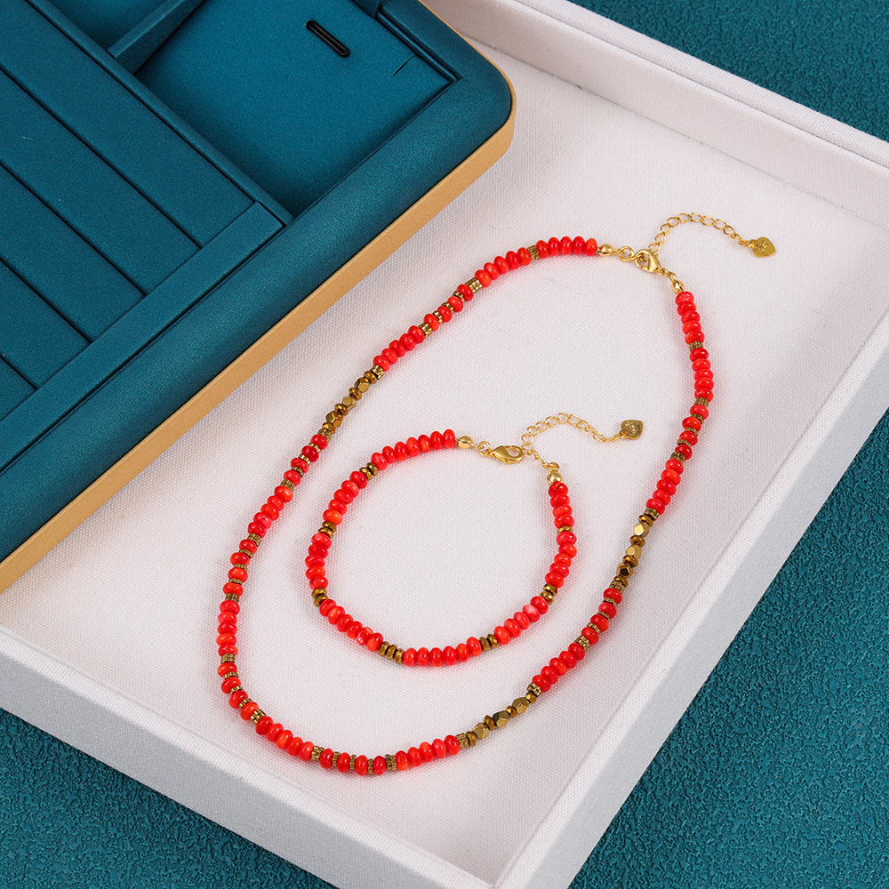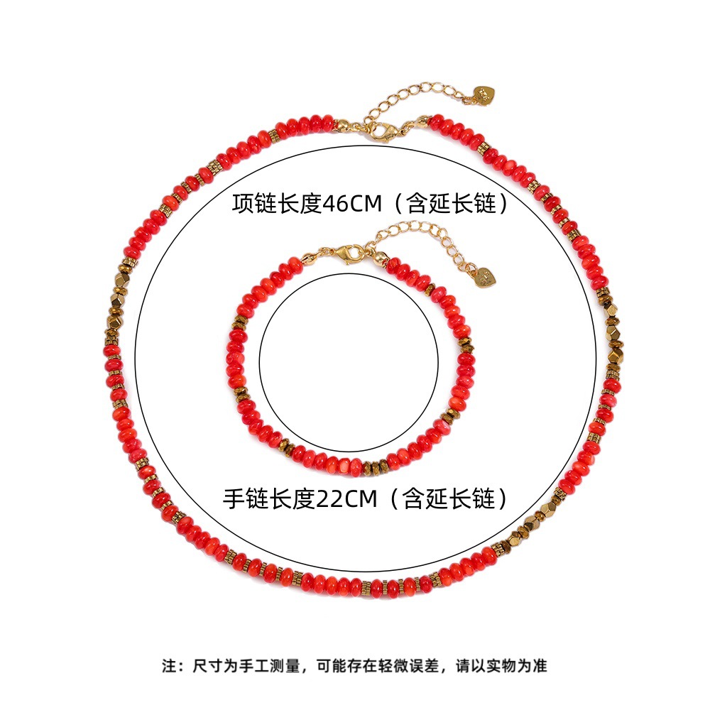 Korean-Style Cross-Border Shell Sweater Chain Necklace Bracelet for Women, Red Vintage Fashion High-End Choker Collarbone Chain Jewelry