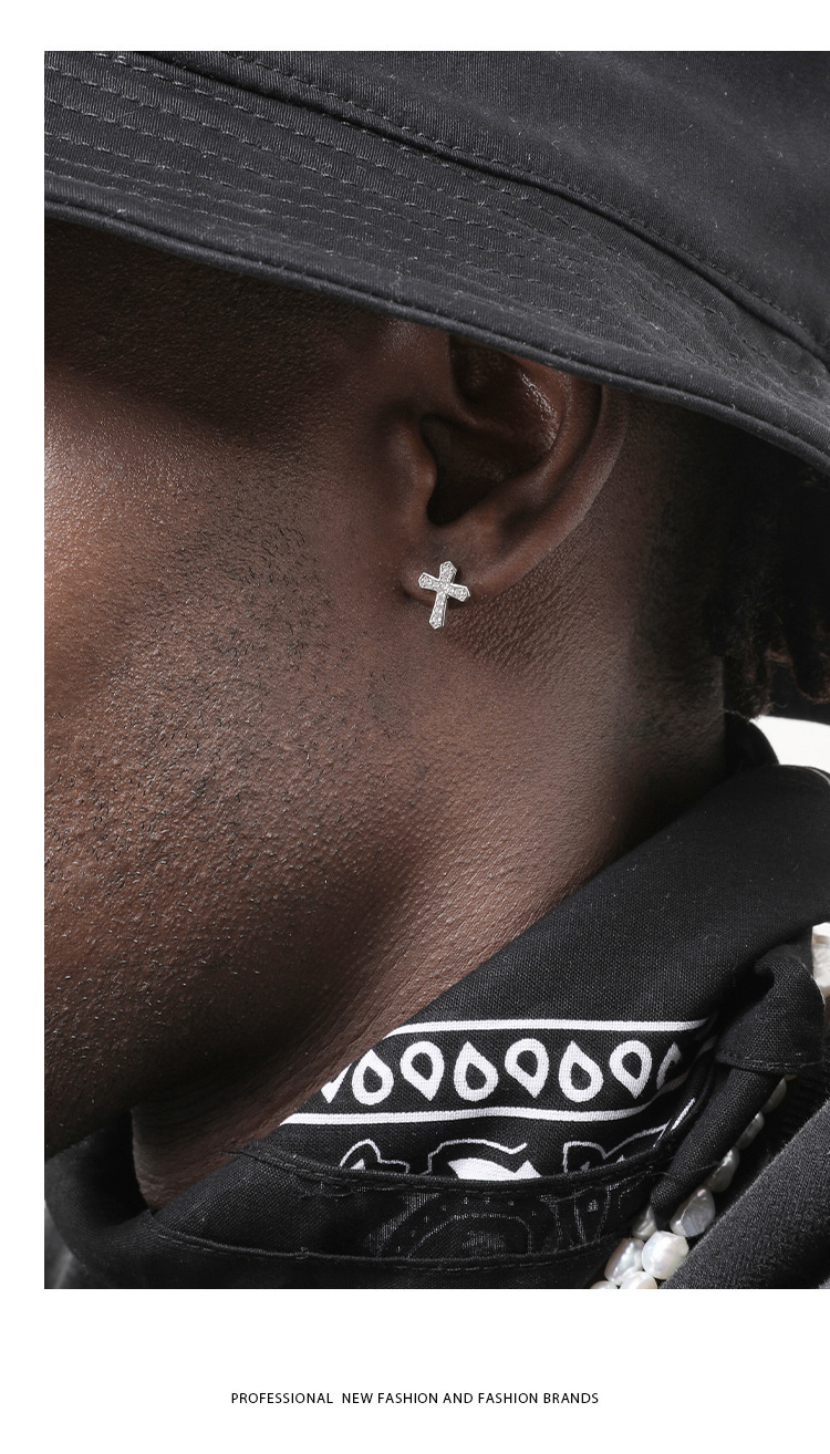 European and American personality full diamond cross earrings men's hip-hop micro-inlaid zircon earrings boys earth cool disco dancing jewelry wholesale
