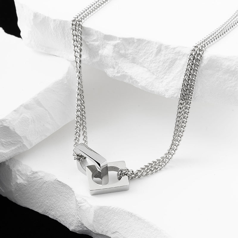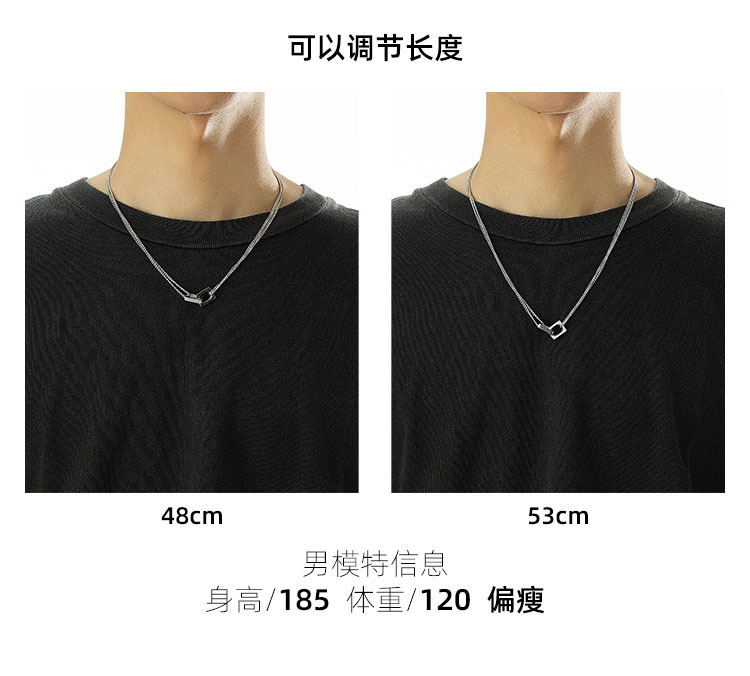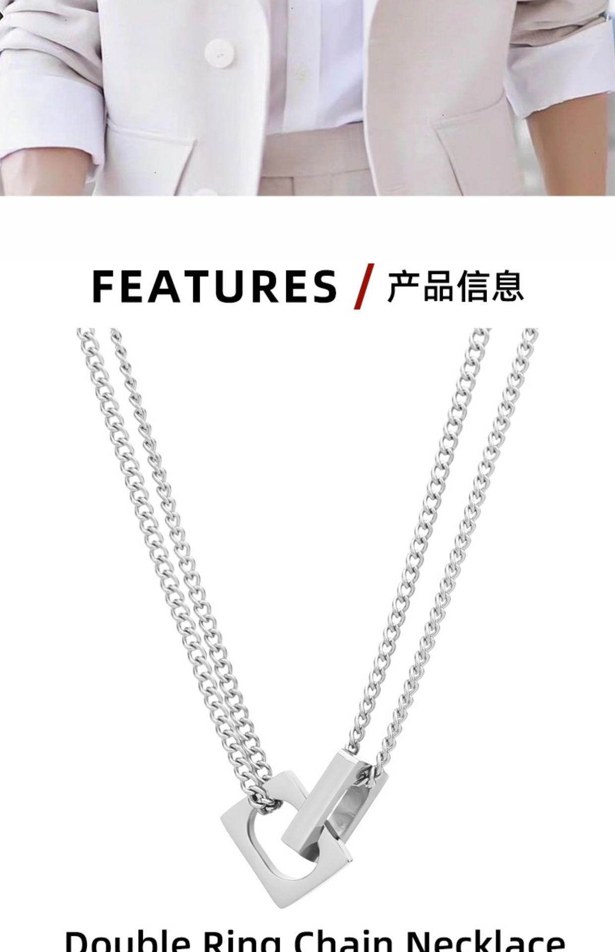 Tan Jianji Minimalist Square Ring Double-layer Necklace Men's All-match Titanium Steel Color-free High-end Clavicle Chain Women