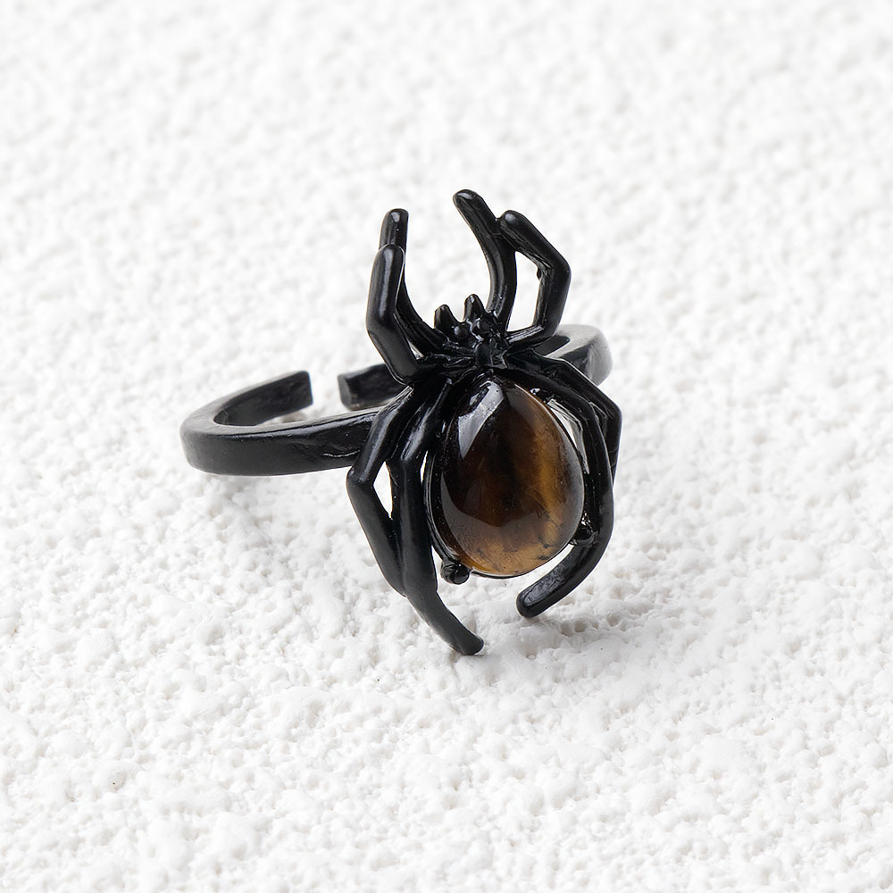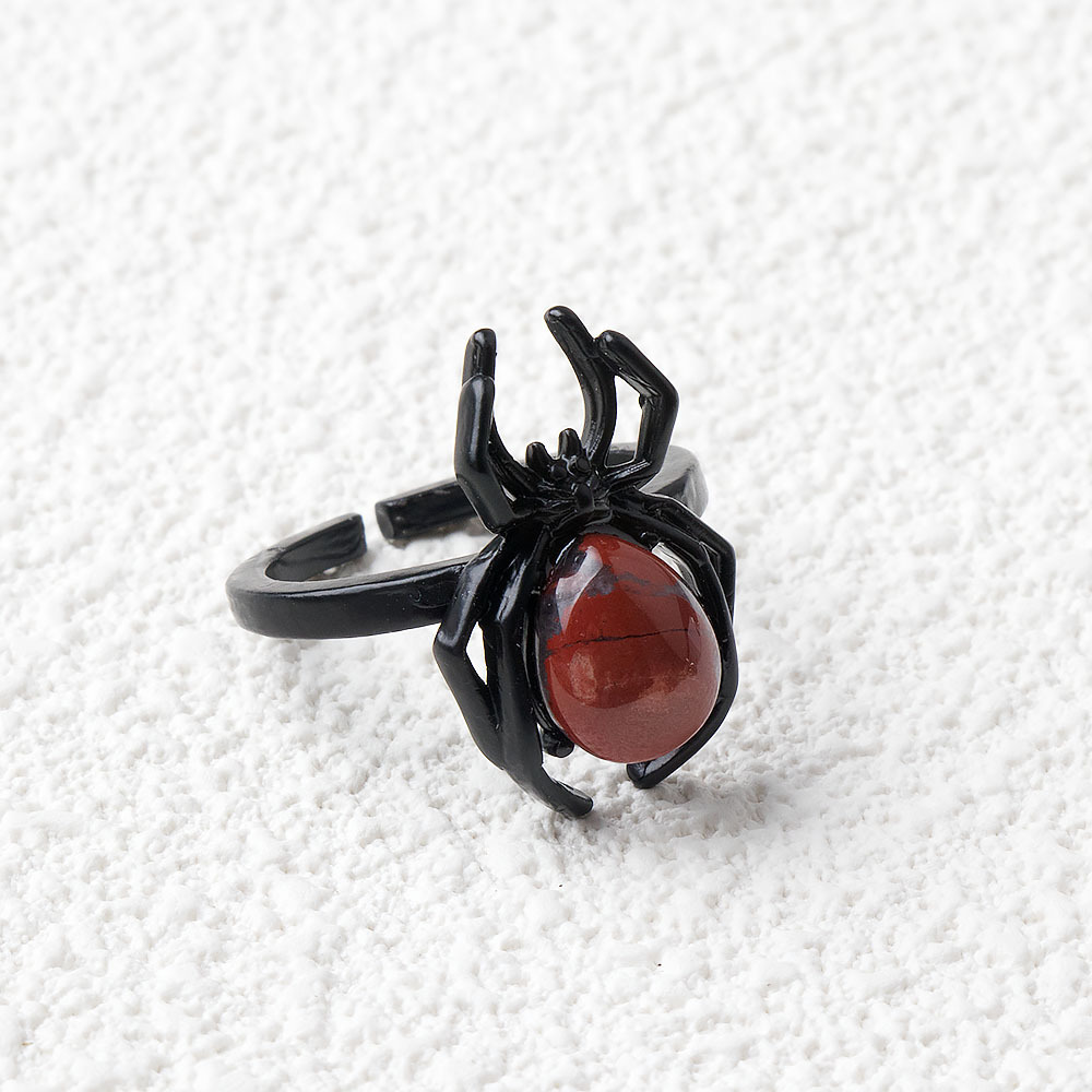 Natural Crystal Agate Stone Inlaid Gemstone Punk Spider Ring Halloween Accessories Cross Border New Product