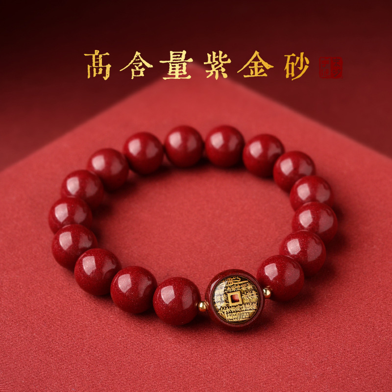 Cinnabar Mountain Ghost Spending Bracelet Men's and Women's Year of Life Bracelet Taoist Jewelry Round Bead Single Circle Red Bracelet Purple Gold Sand