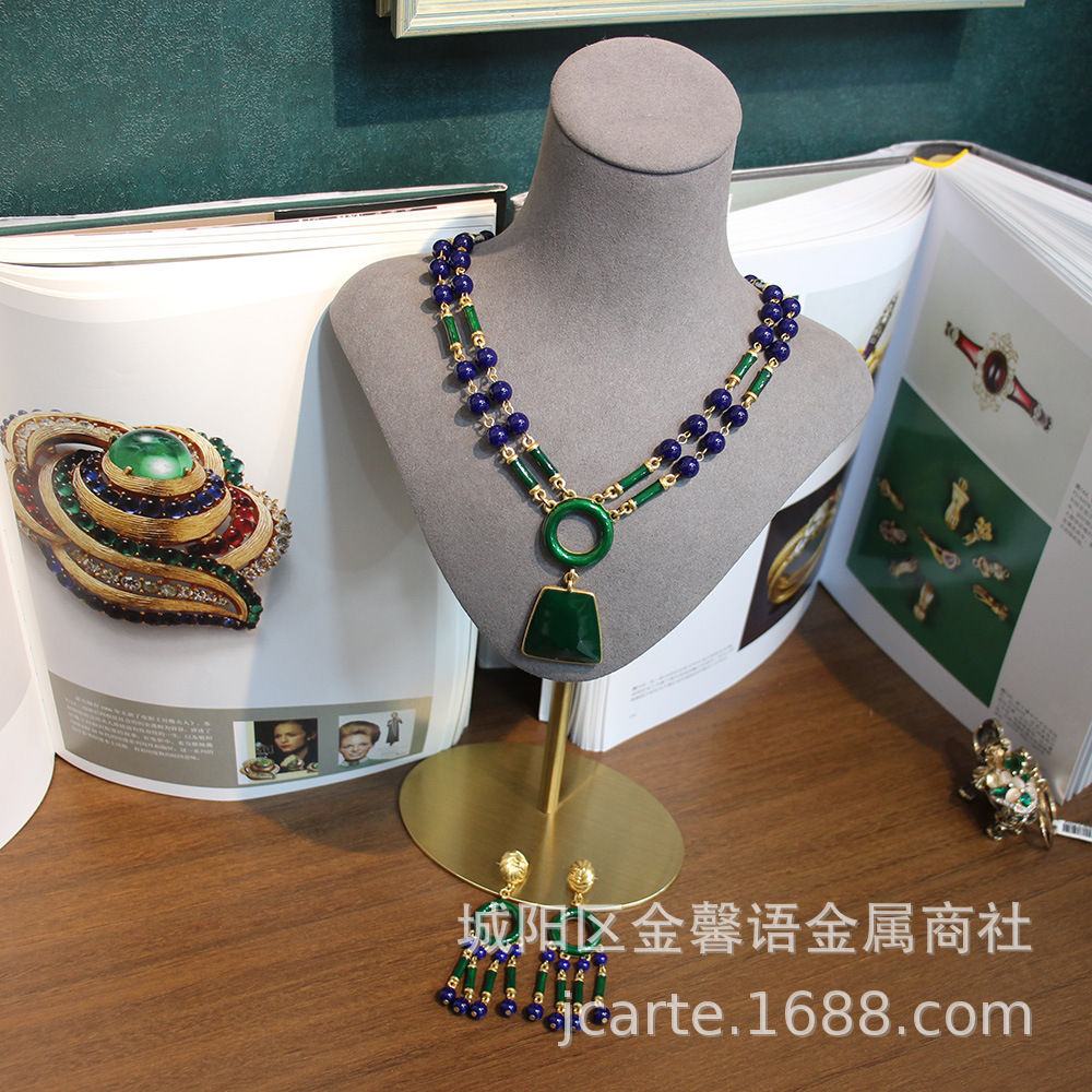 Jinxinyu Middle Ancient Wholesale Green No Matter Lapis Lazuite Enamel Earrings Baojia Booklet Necklace Earrings suit