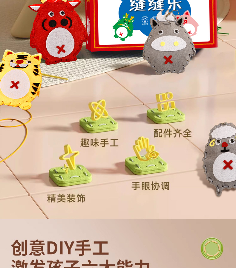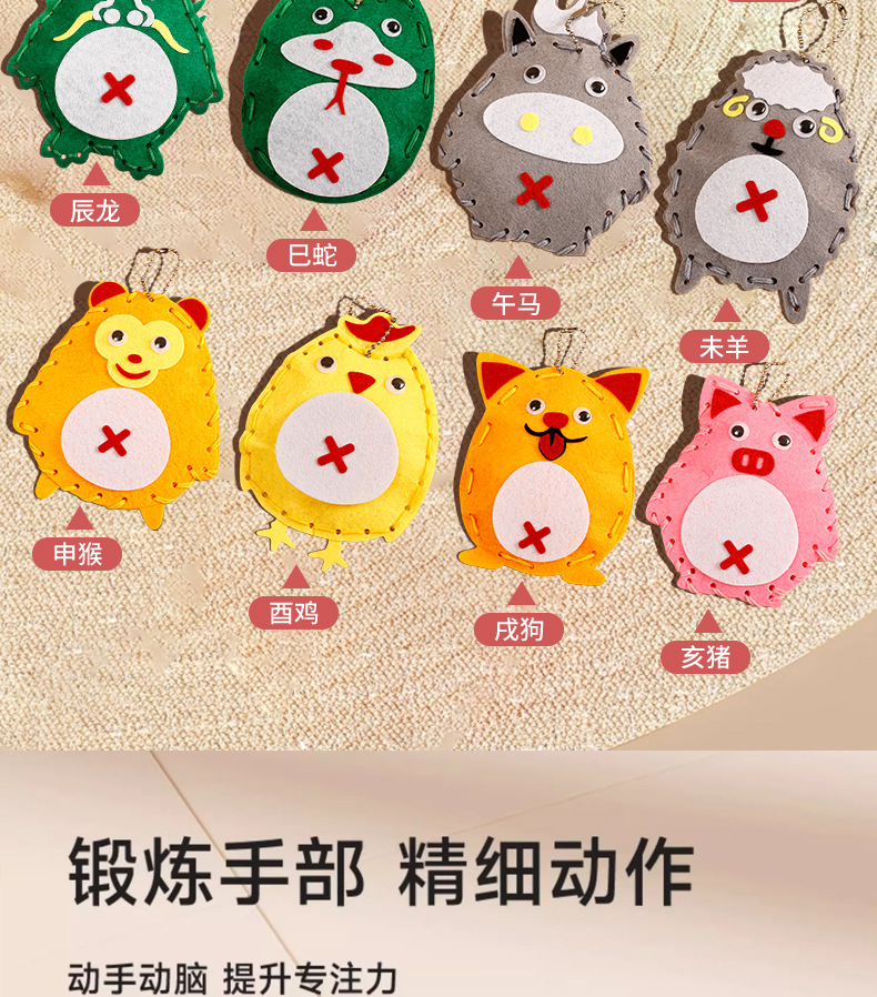Children's sewing music factory direct cartoon twelve zodiac cute diy handmade pendant kindergarten educational toys