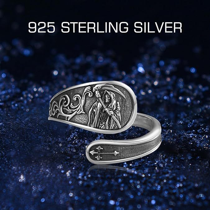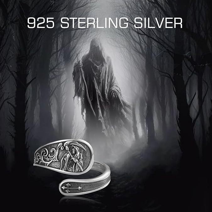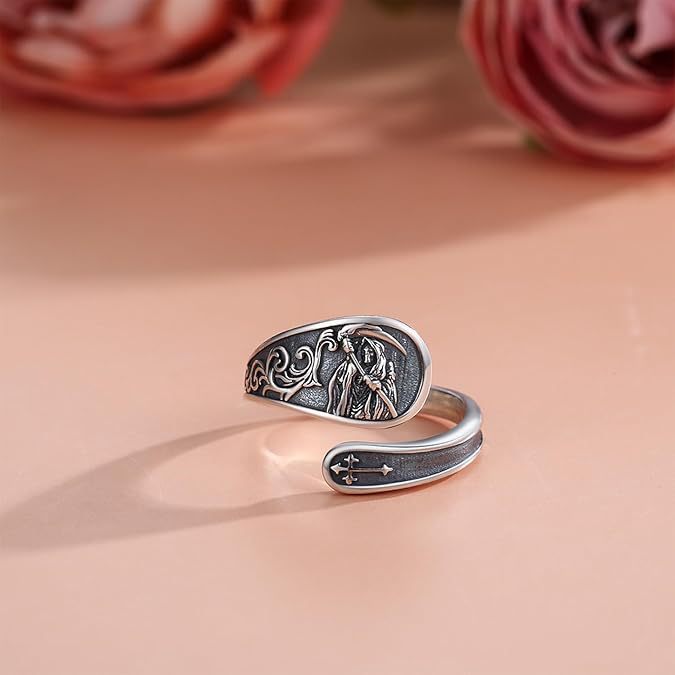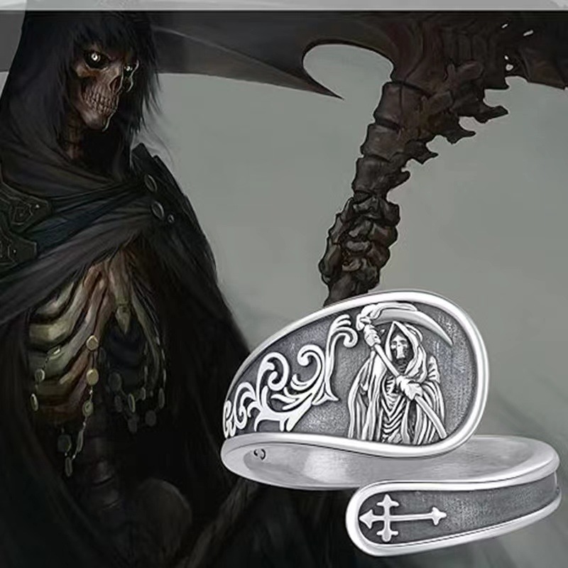 Amazon New Jewelry European and American Personality Reaper Adjustable Skull Jewelry Halloween Open Spoon Ring