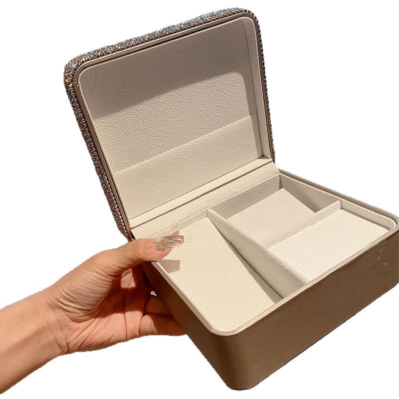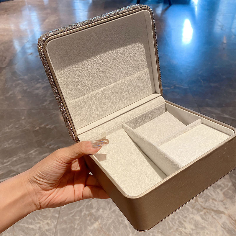 Diamond-encrusted leather jewelry box dressing box portable high-end exquisite high-end luxury jewelry box cross-border explosions manufacturers straight
