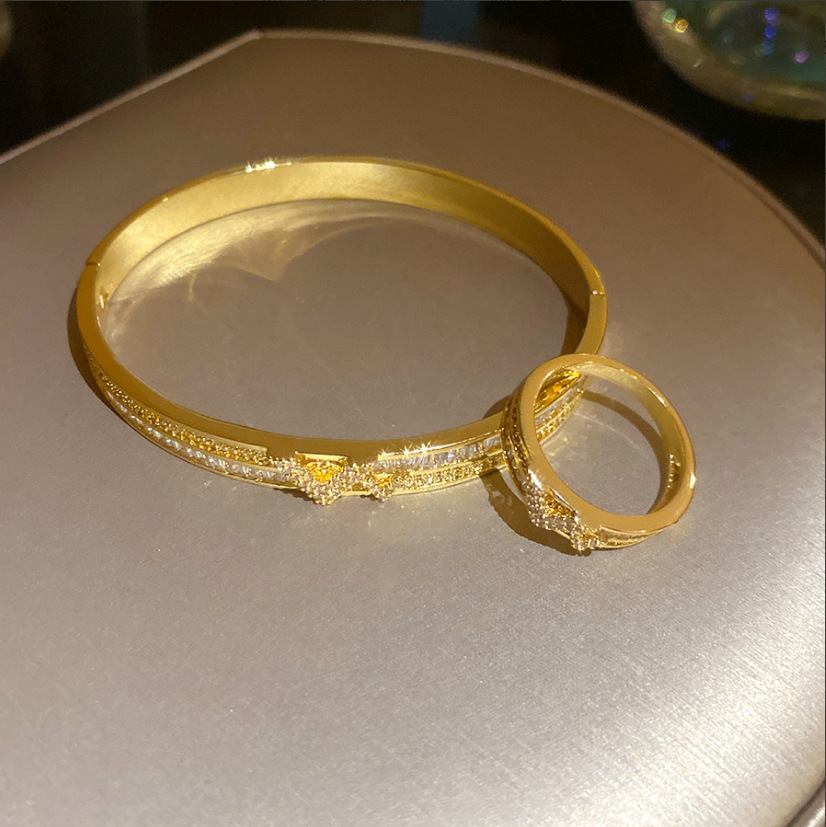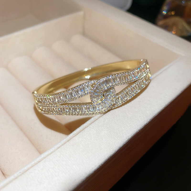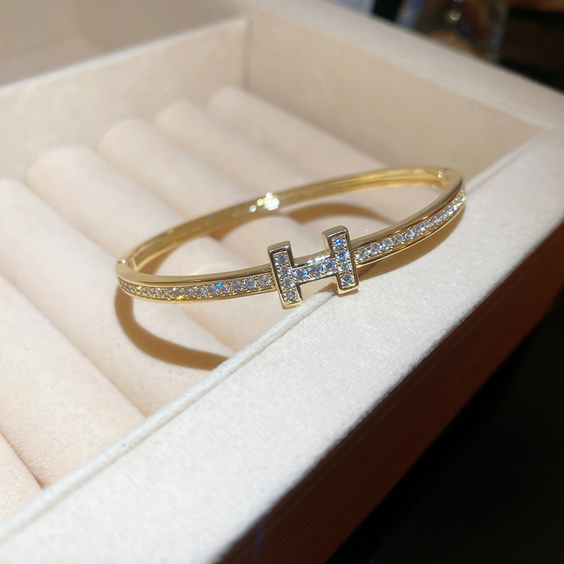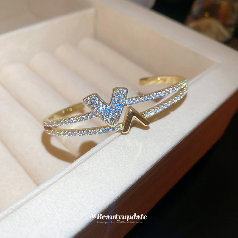 Real Gold Plated Diamond Letter Opening Bracelet Niche All-match Bracelet 2025 New Light Luxury High-end Jewelry for Women