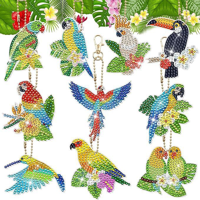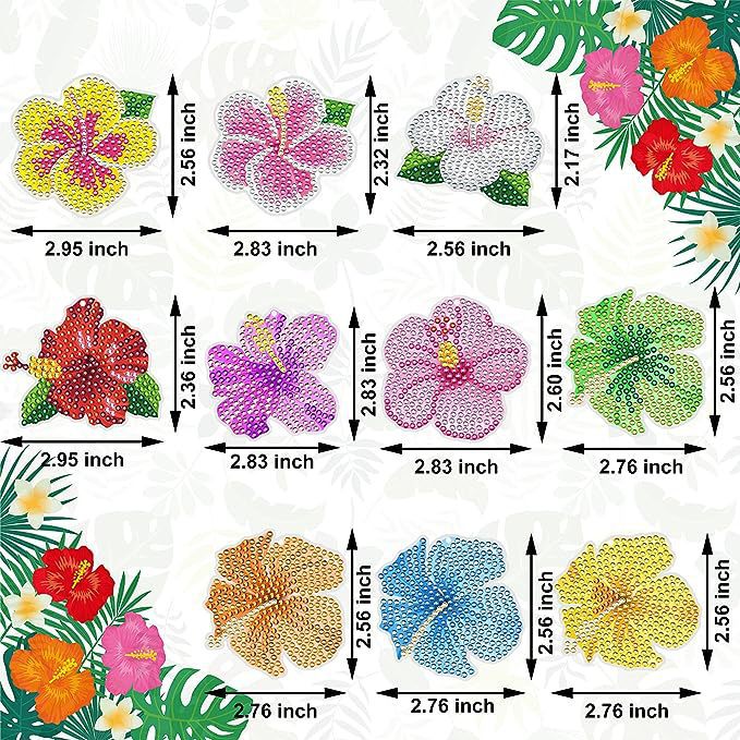 5D Tropical Flower Diamond Painting Keychain Hawaiian Hibiscus Diamond Art Key Ring Summer 5D 10 Pieces Ornaments