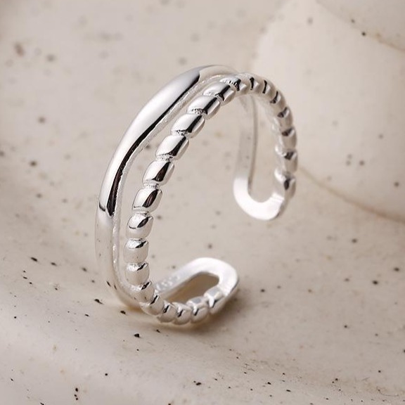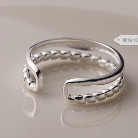 Double-layer chain ring South Korea simple temperament fashion trend personality open ring high sense food ring
