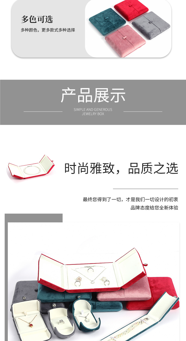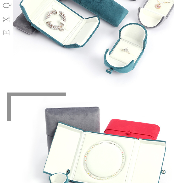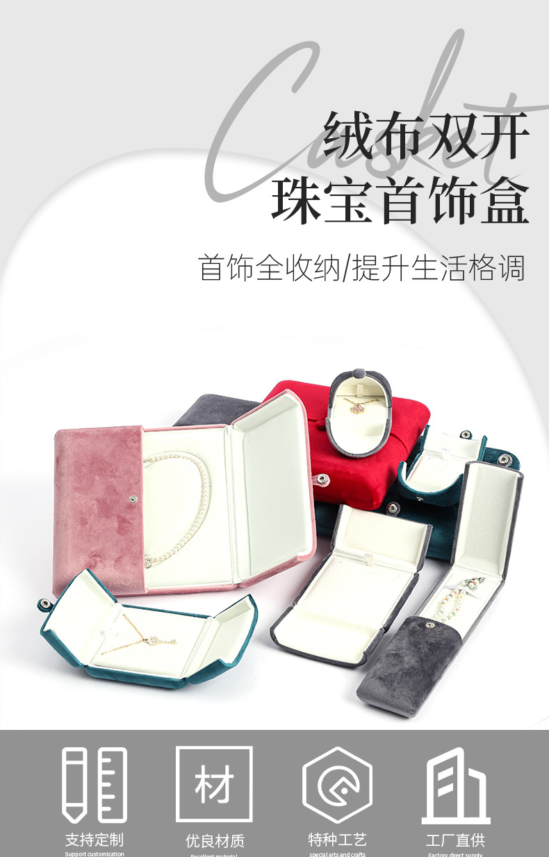 Flocking Double Opening Jewelry Box Ring Box Necklace Storage Box Velvet Jewelry Box Jewelry Box Packaging Gift Box Wholesale