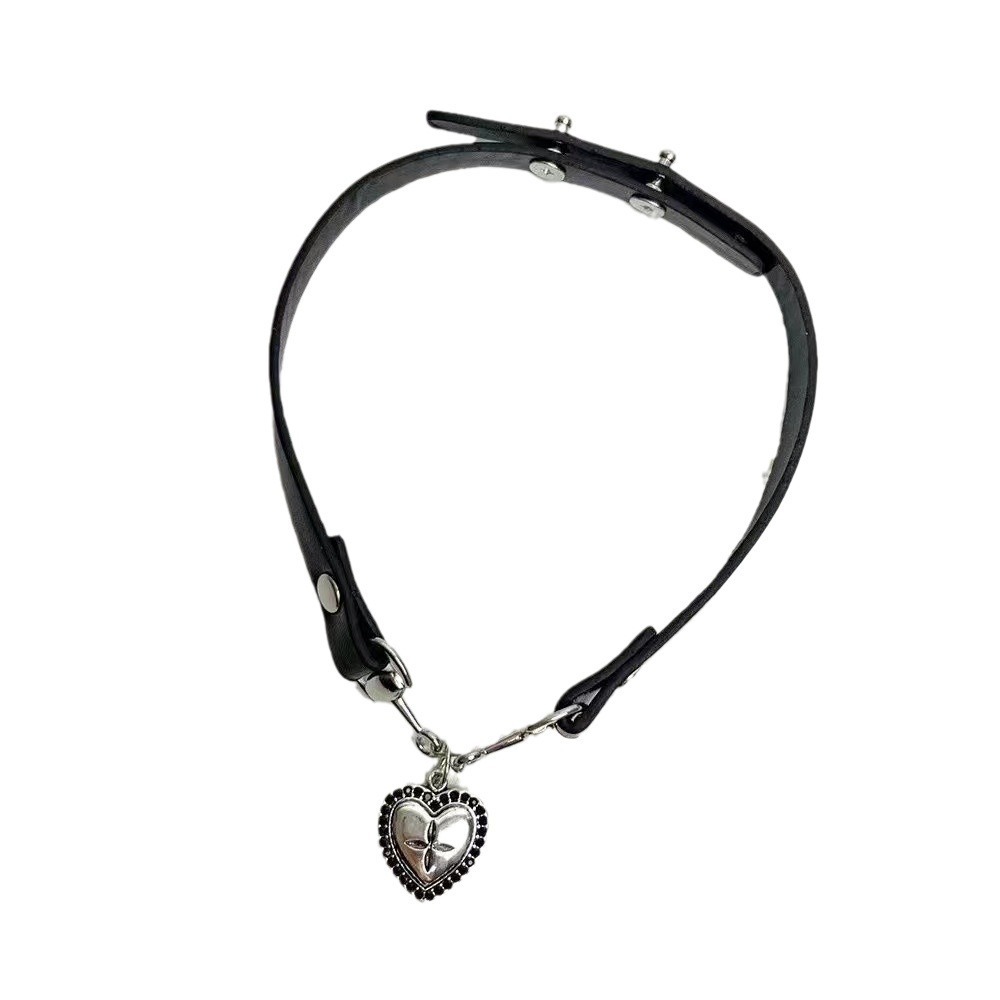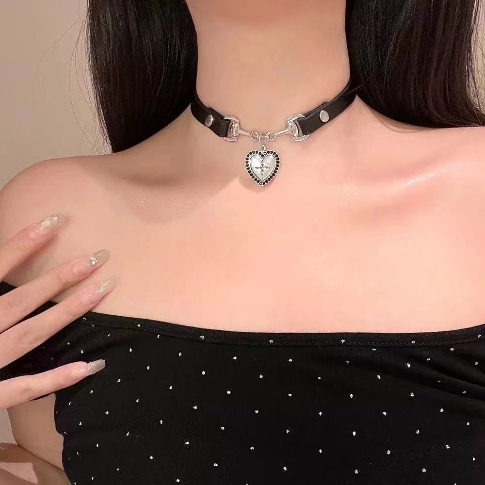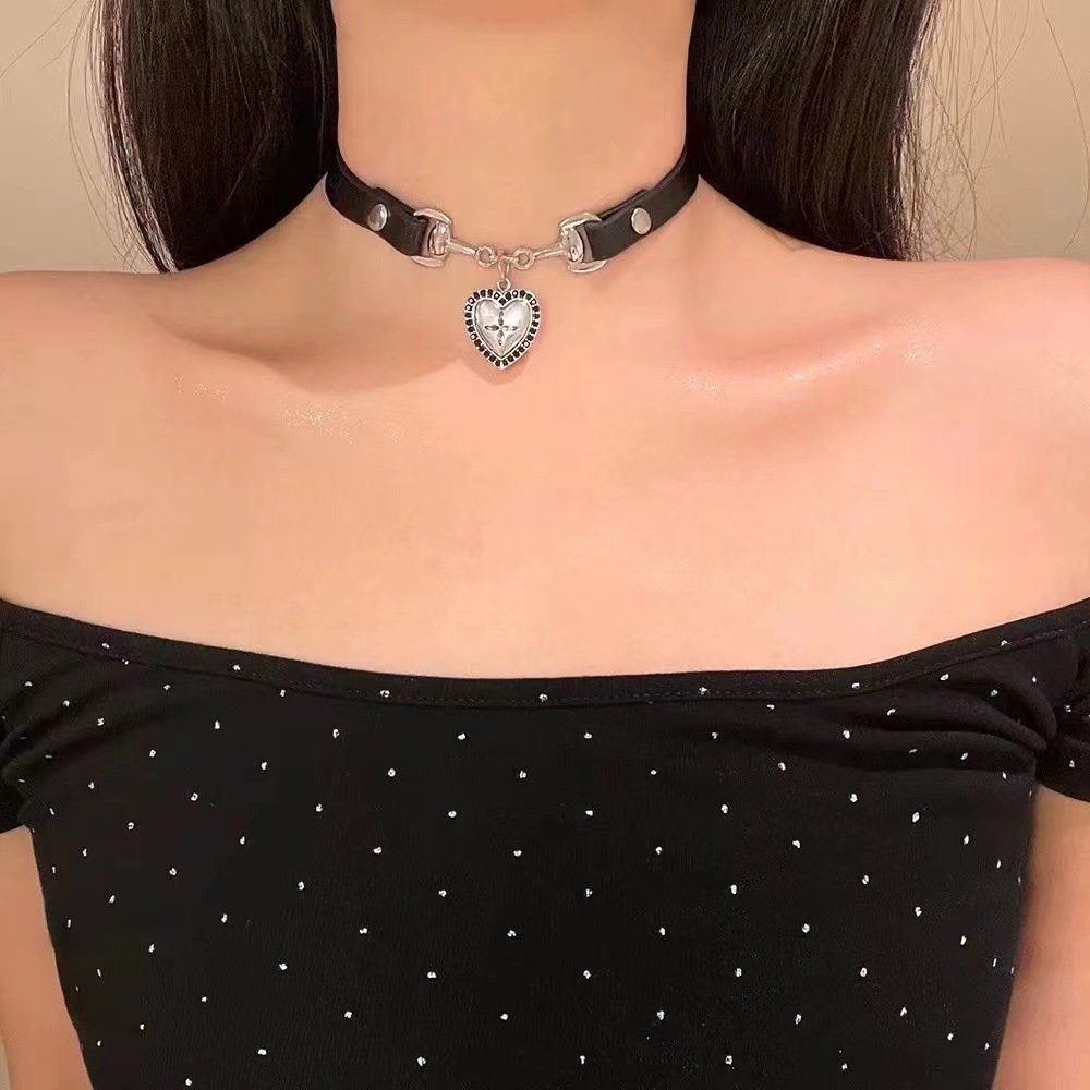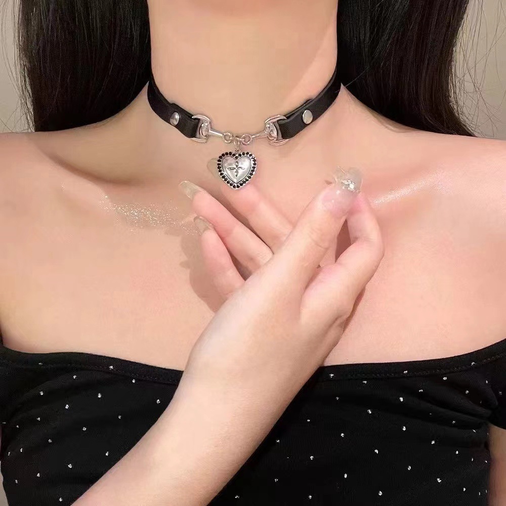 Sweet Cool Spice Style Black Love Leather Collar Women Choker Neck Ring Necklace Neck Accessories High-grade Necklace