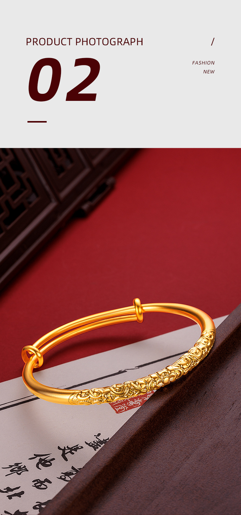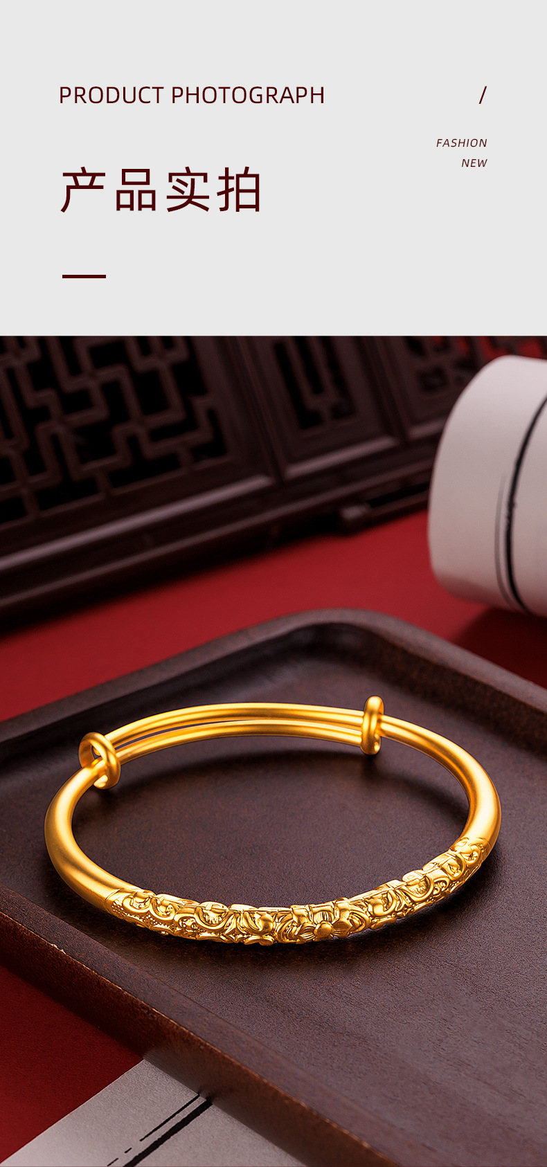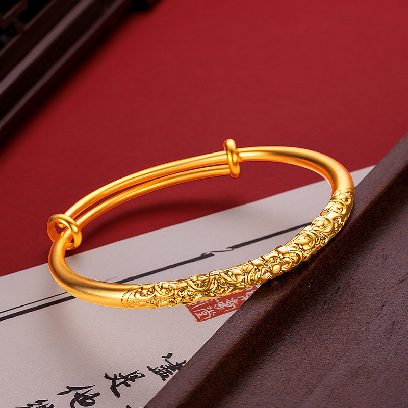 Ancient Fine Sand Bauhinia Flower Curly Grass Bracelet Women's Vintage National Style National Tide Golden Carved Vein Circle Push-Pull Bracelet