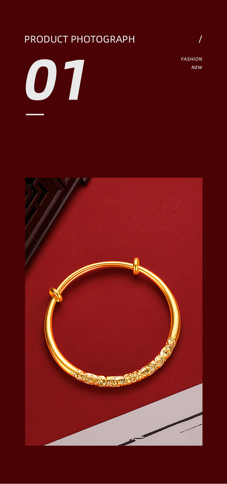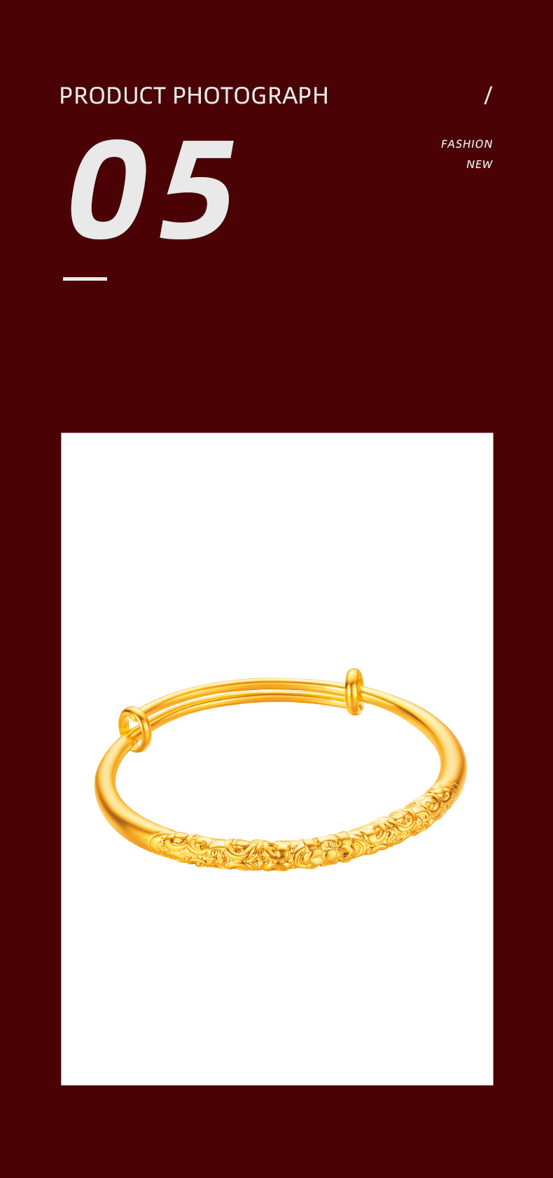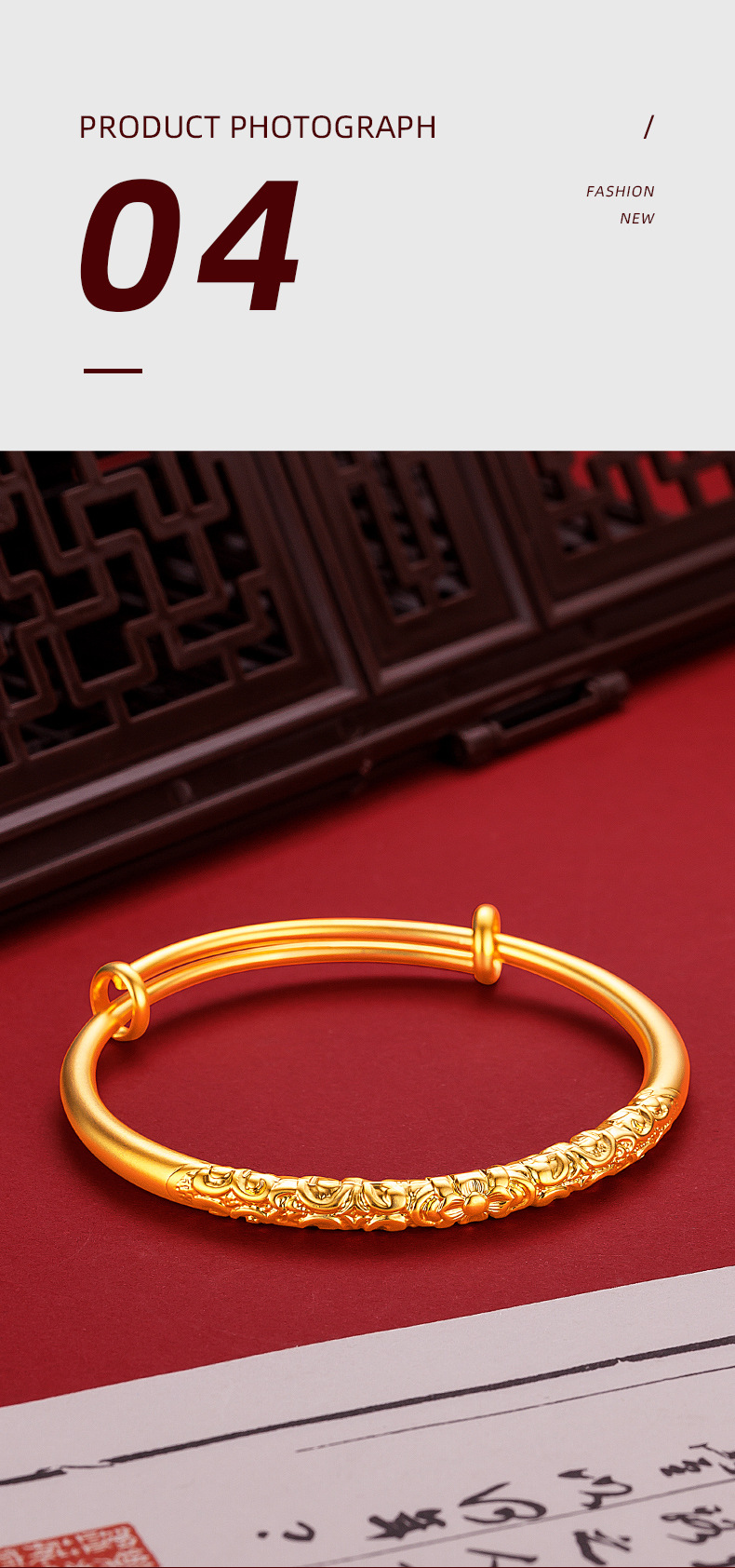 Ancient Fine Sand Bauhinia Flower Curly Grass Bracelet Women's Vintage National Style National Tide Golden Carved Vein Circle Push-Pull Bracelet