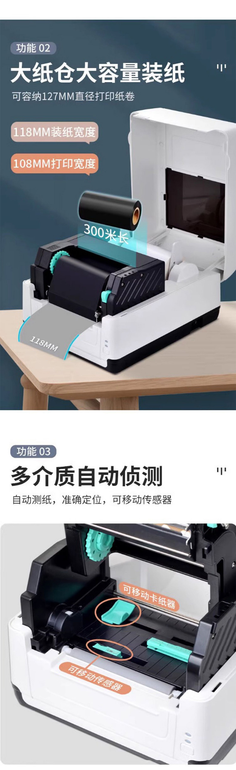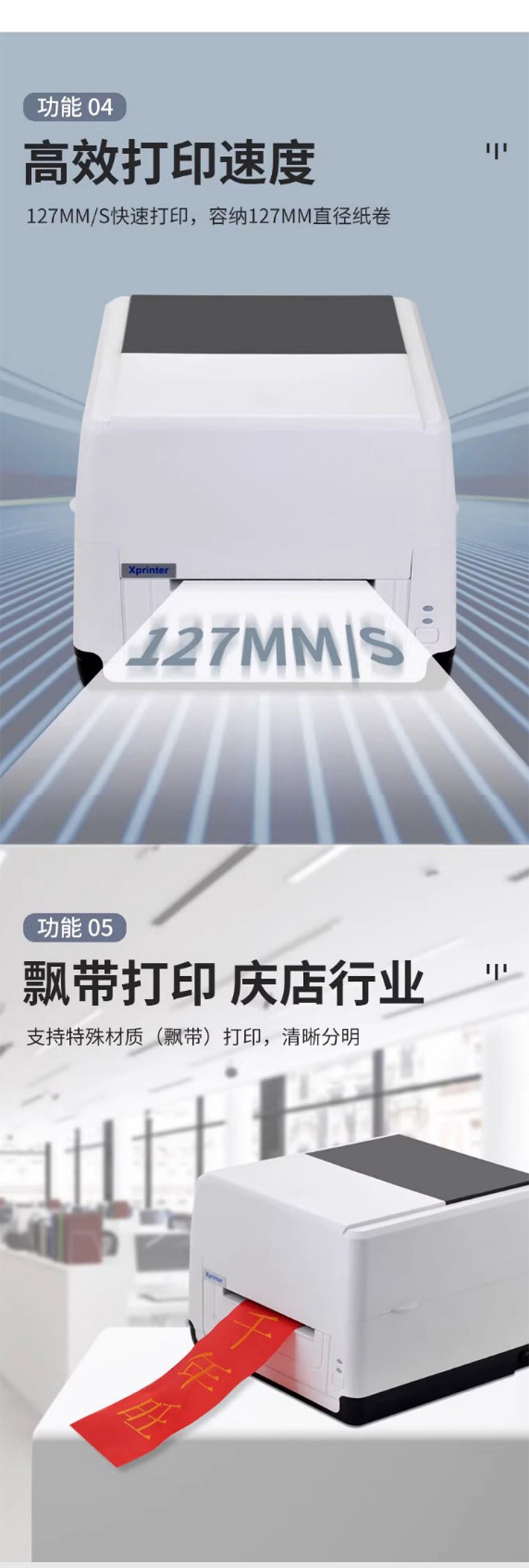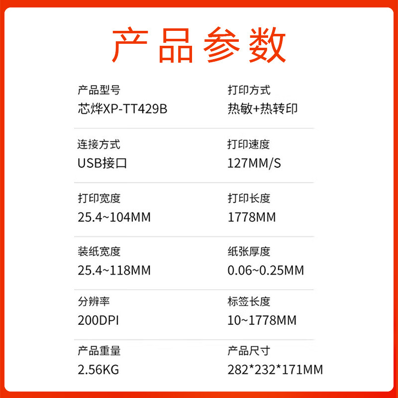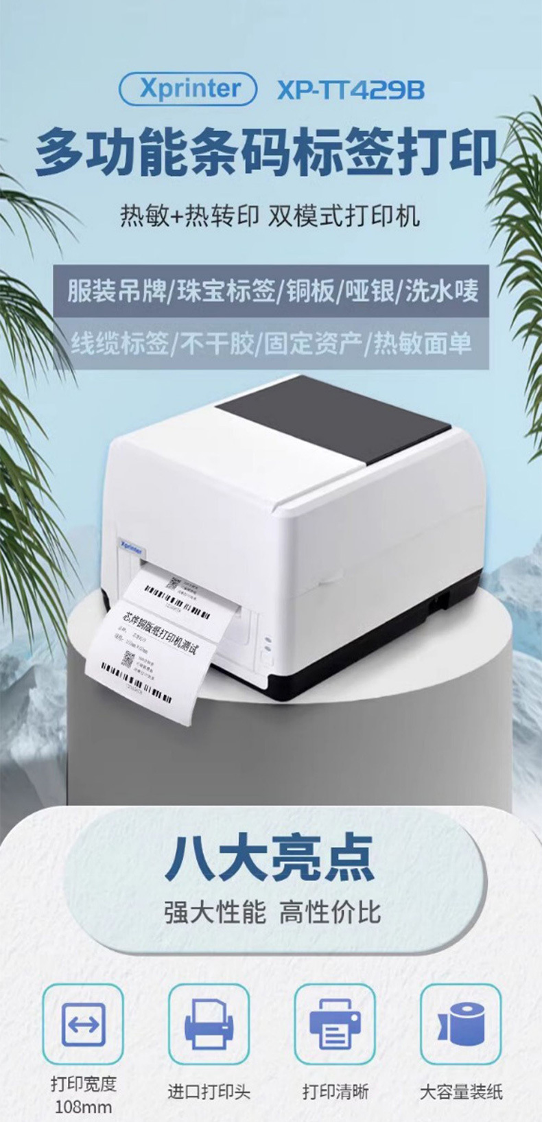 Xinye XP-TT429B thermal transfer label printer clothing tag wash mark sticker barcode jewelry