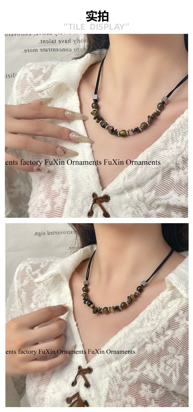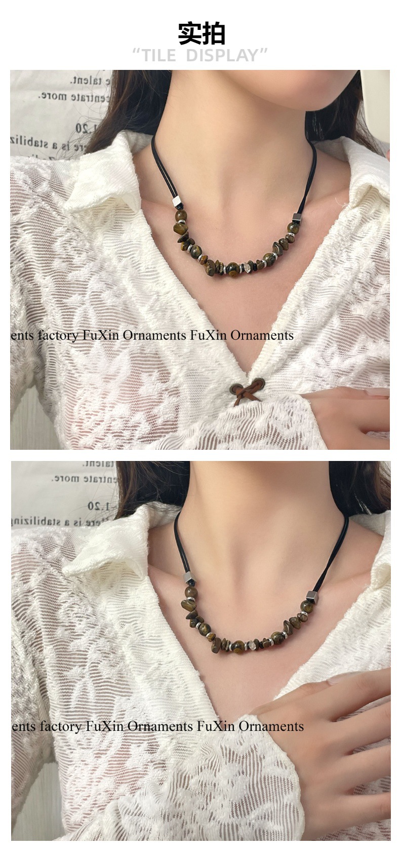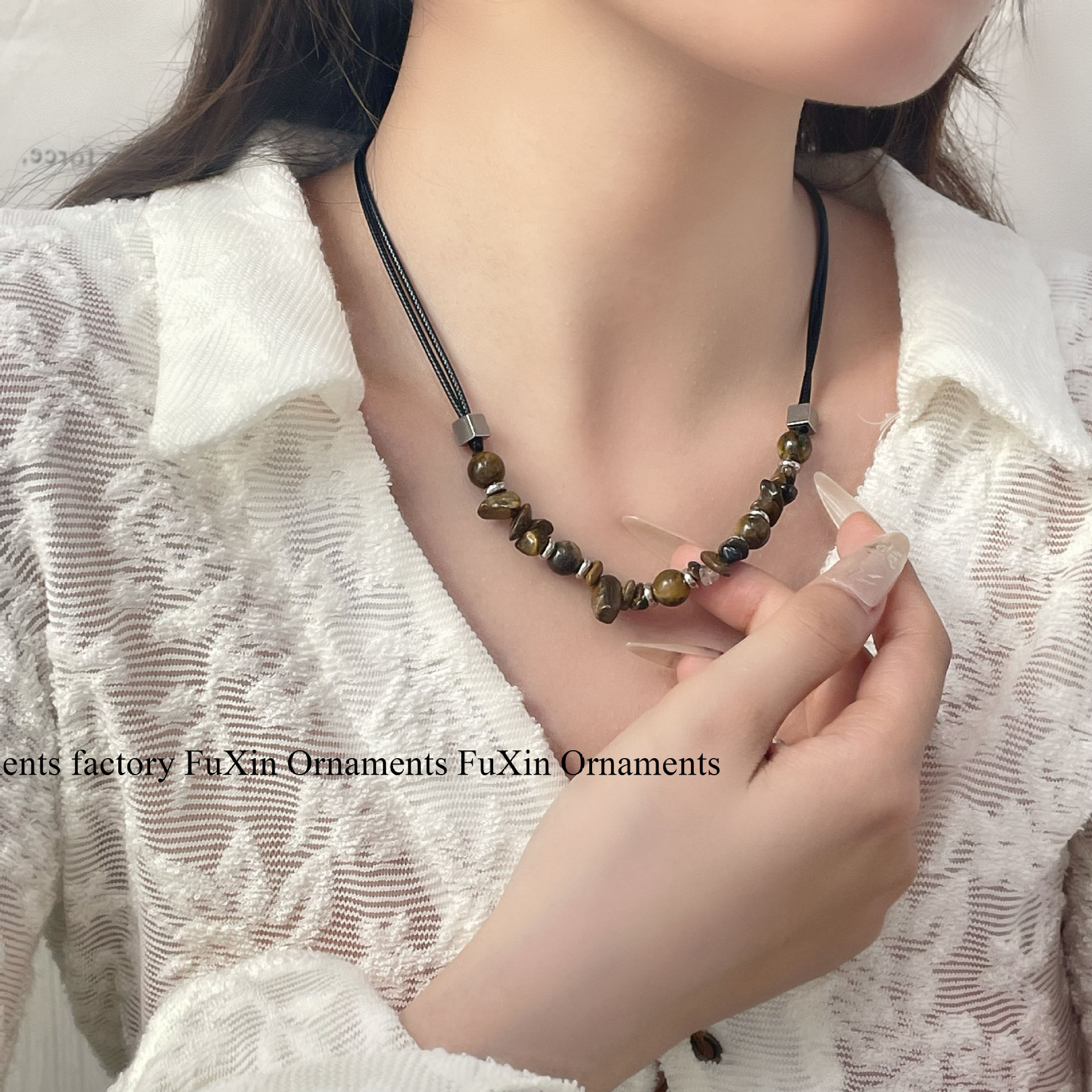 Brown Tiger's Eye Stone Niche All-match Necklace Fashion Trend Hip Hop Style Girl's Design High-end Clavicle Chain