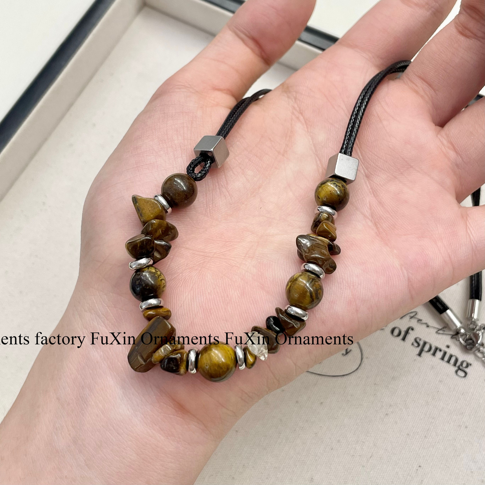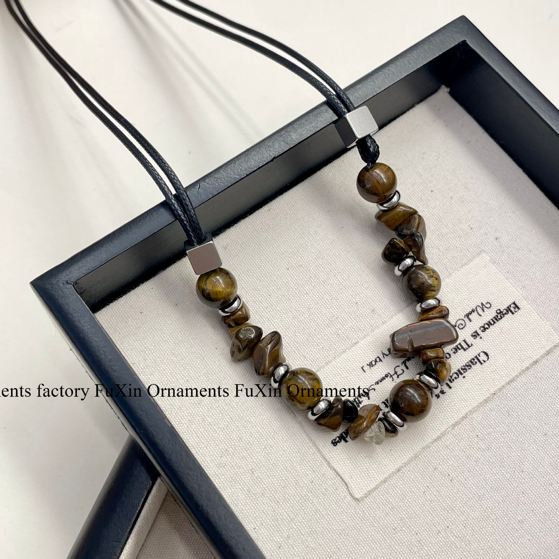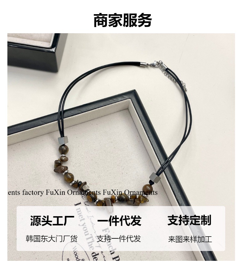 Brown Tiger's Eye Stone Niche All-match Necklace Fashion Trend Hip Hop Style Girl's Design High-end Clavicle Chain