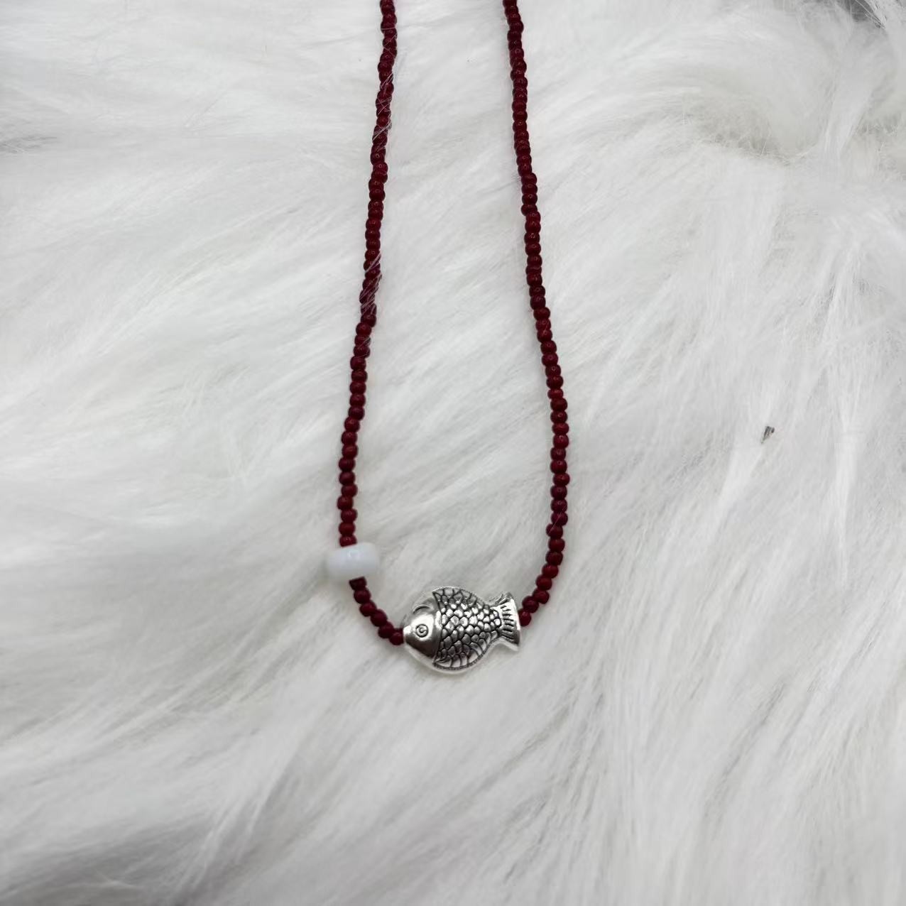 Color: Red beaded fish necklace