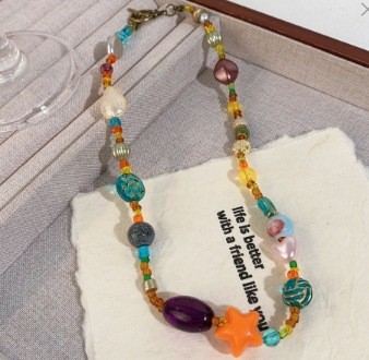 Color: Star colorful geometric stone beaded necklace