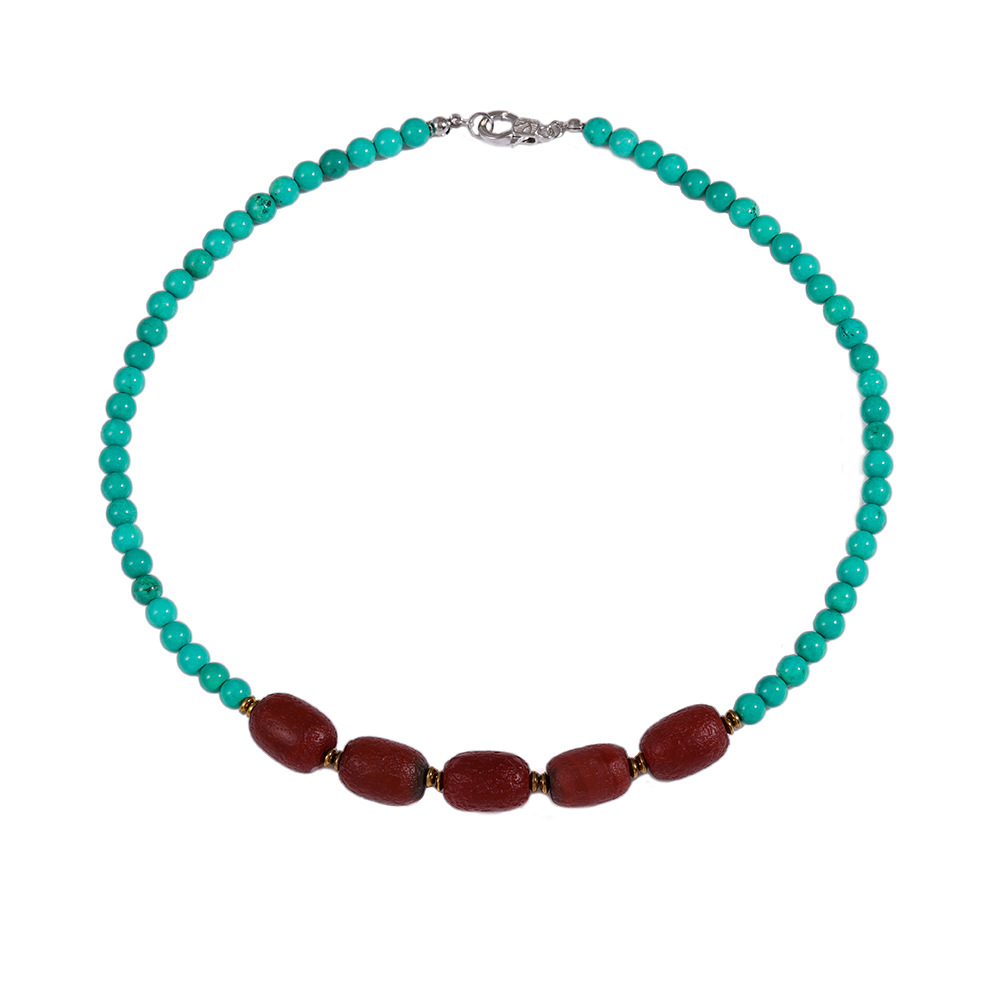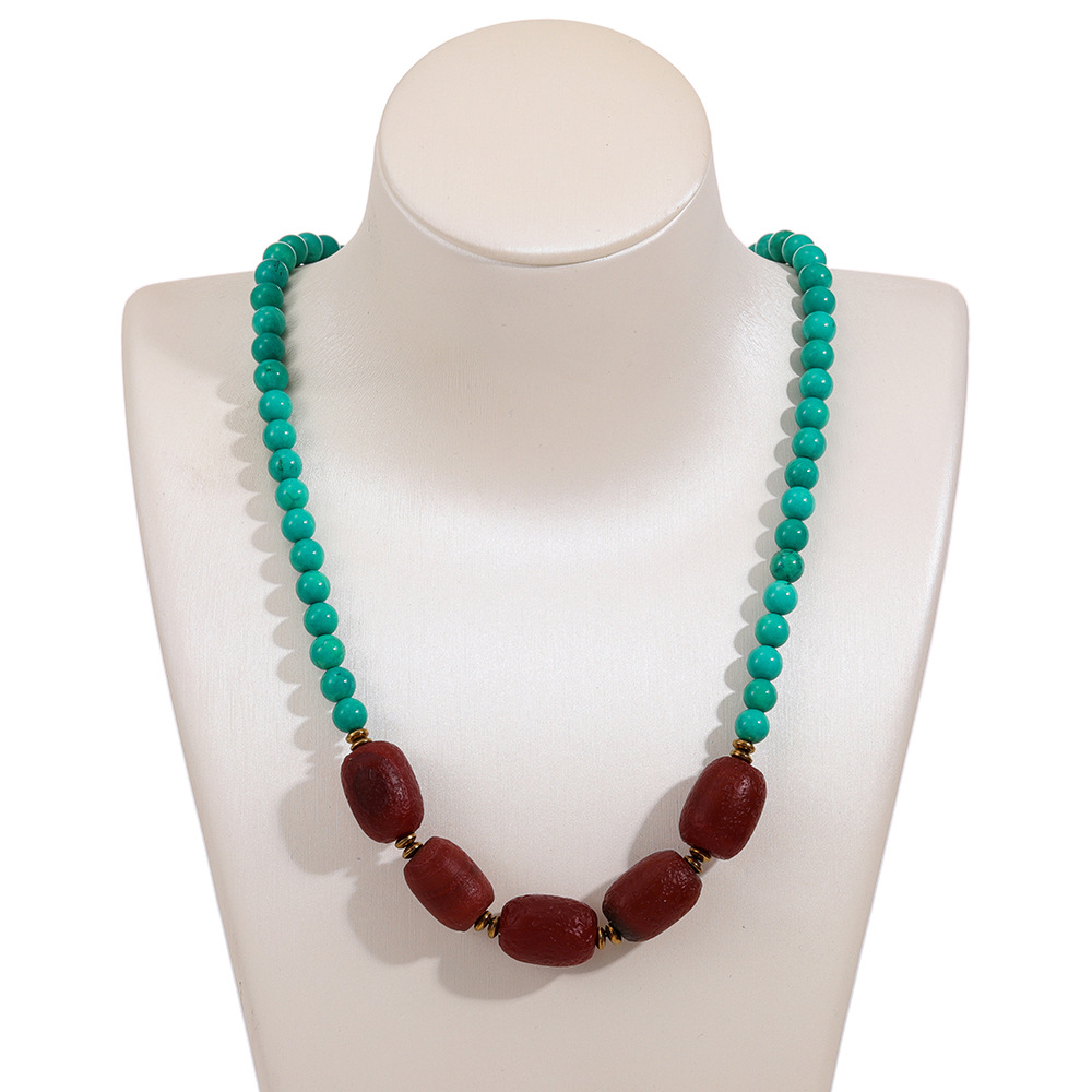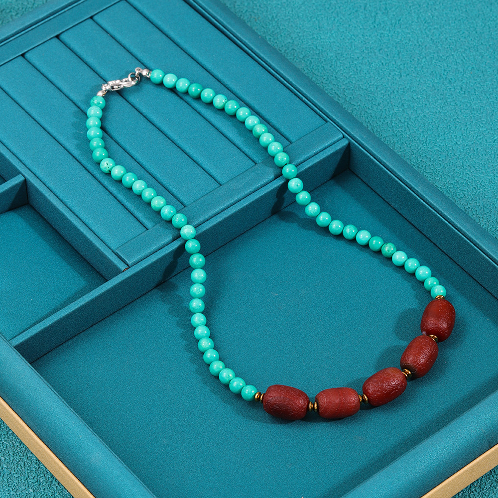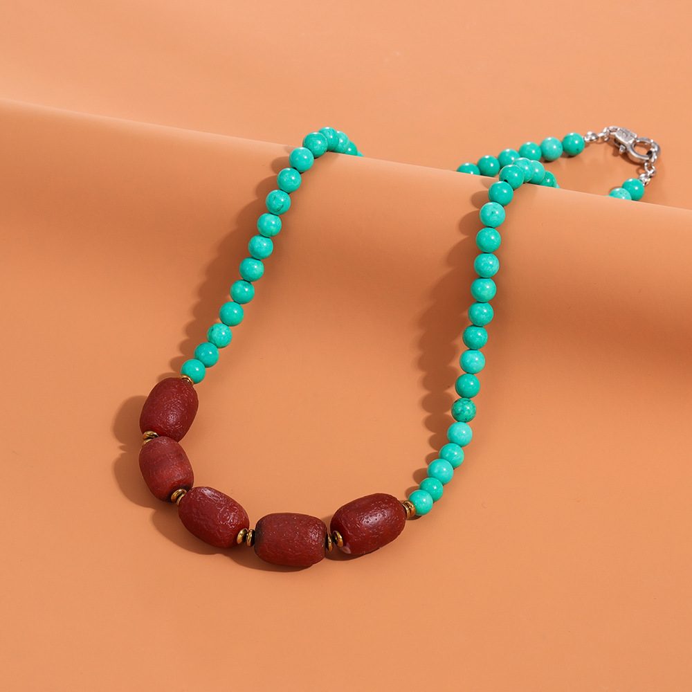 Cross-Border New Product Natural Turquoise Old Southern Red Agate Necklace for Women, High-End Sweater Chain Beaded Necklace Clavicle Chain Jewelry