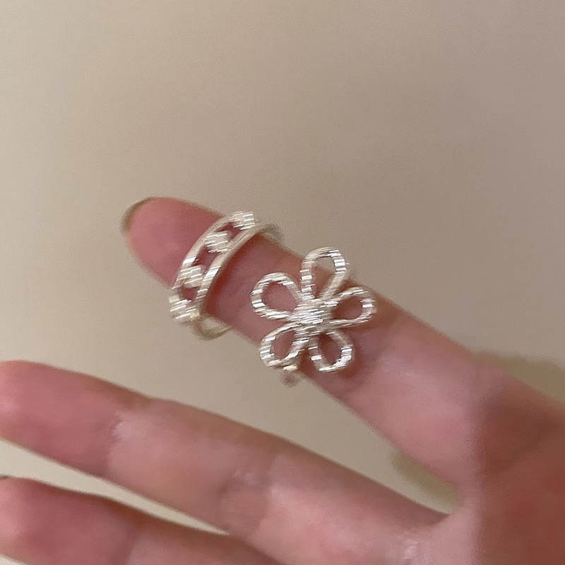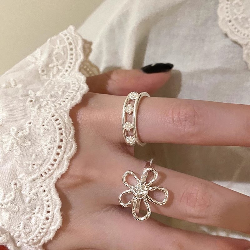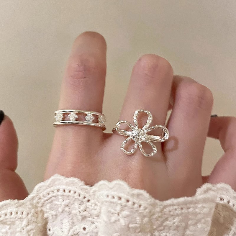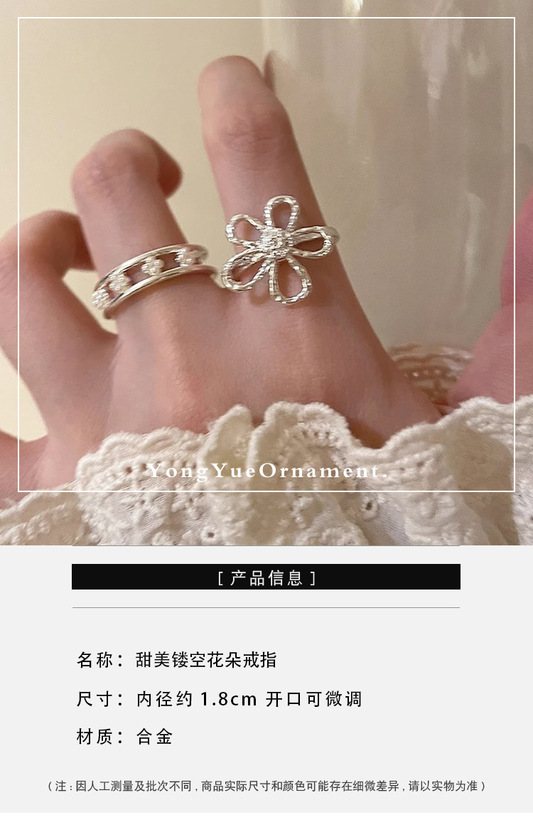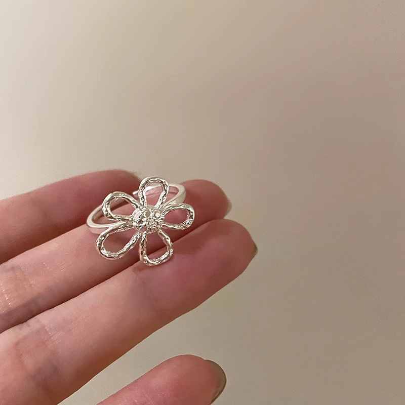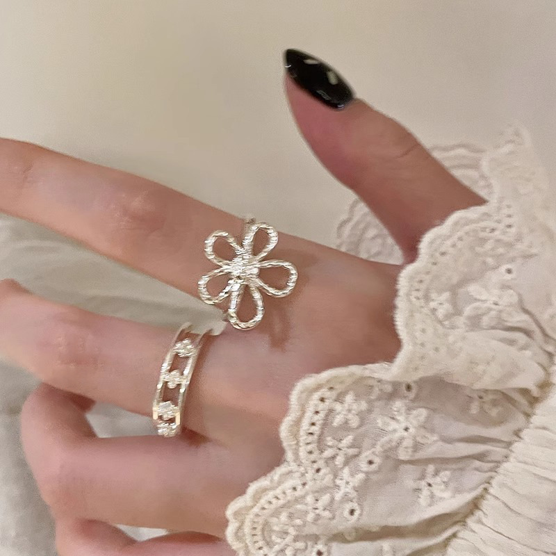 Simple Hollow Flower Alloy Ring Women's Niche Design Sense Opening Adjustable Fashion All-match Stacked Finger Ring