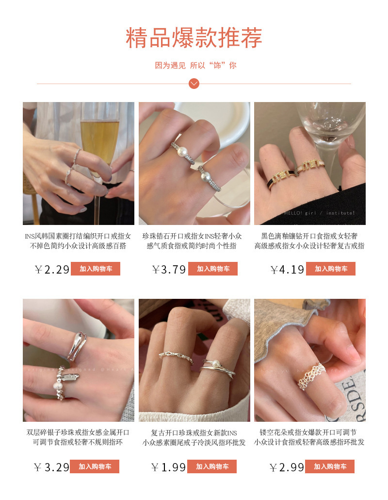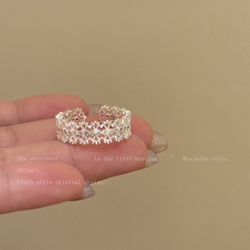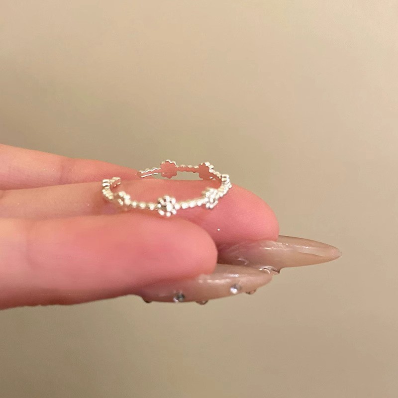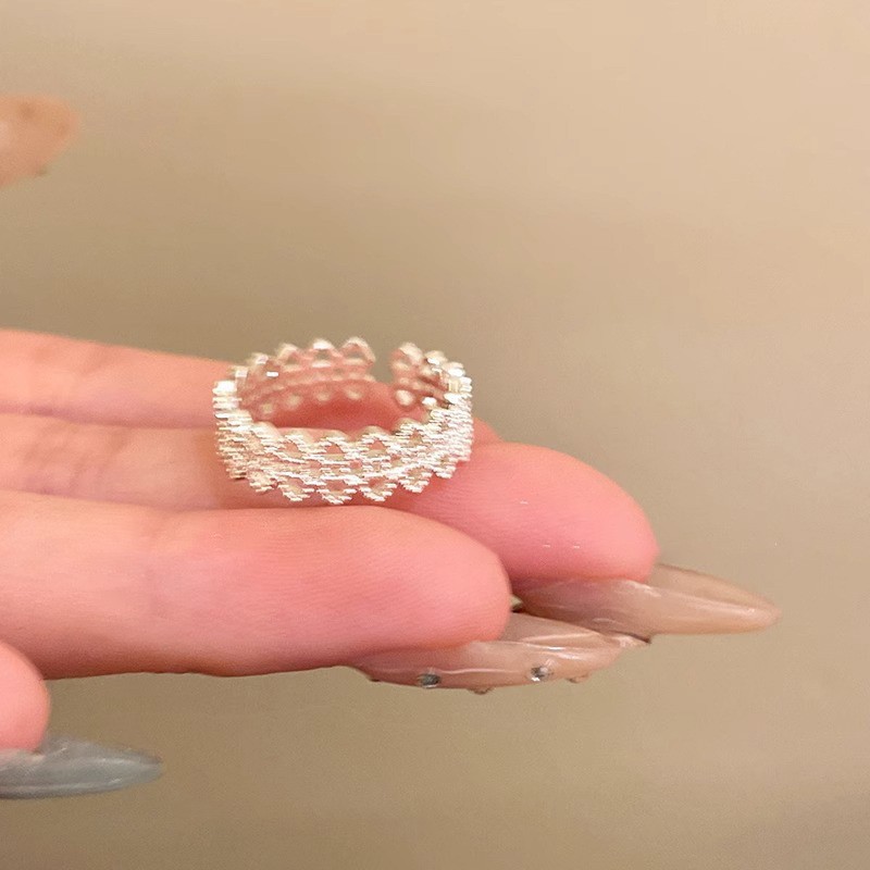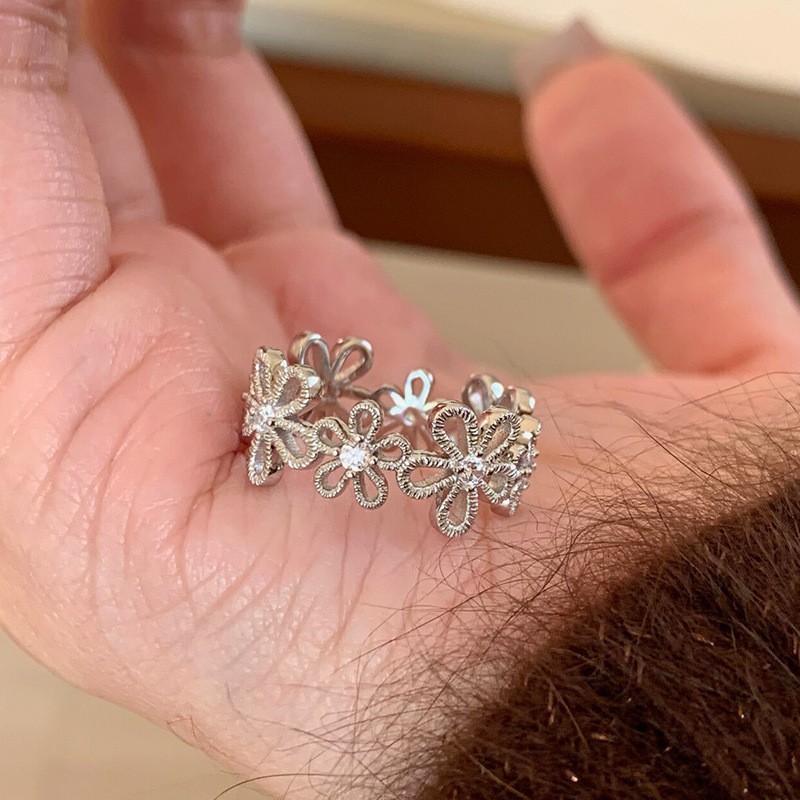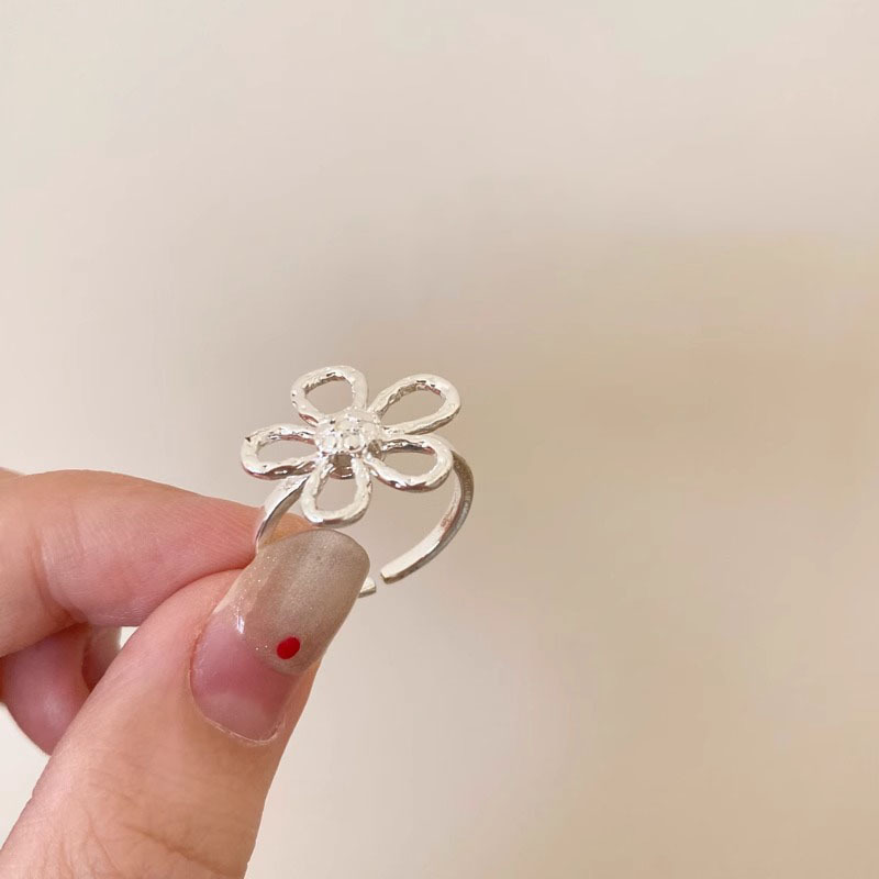 Simple Hollow Flower Alloy Ring Women's Niche Design Sense Opening Adjustable Fashion All-match Stacked Finger Ring
