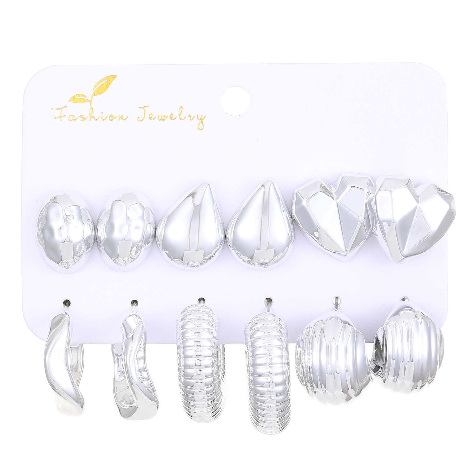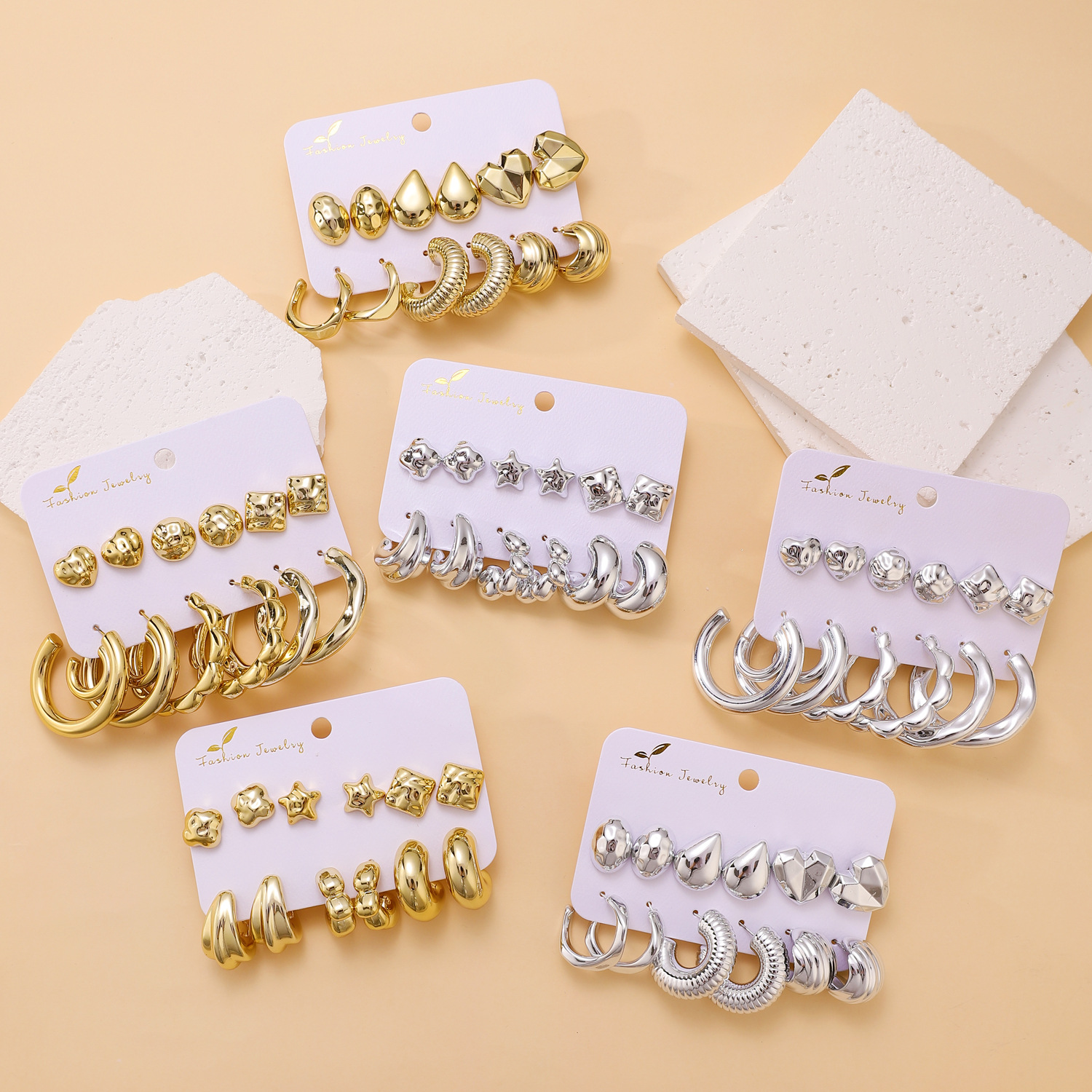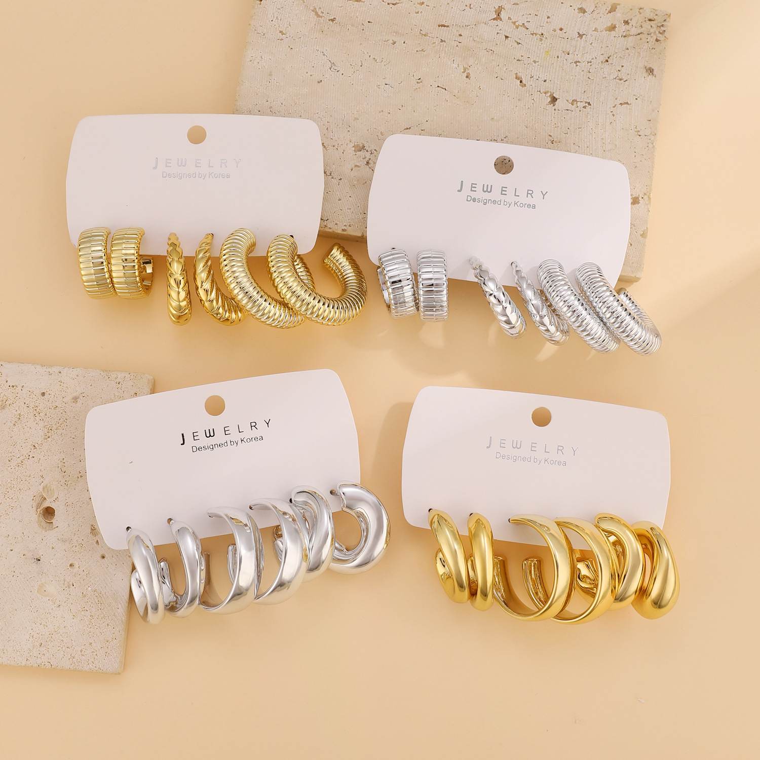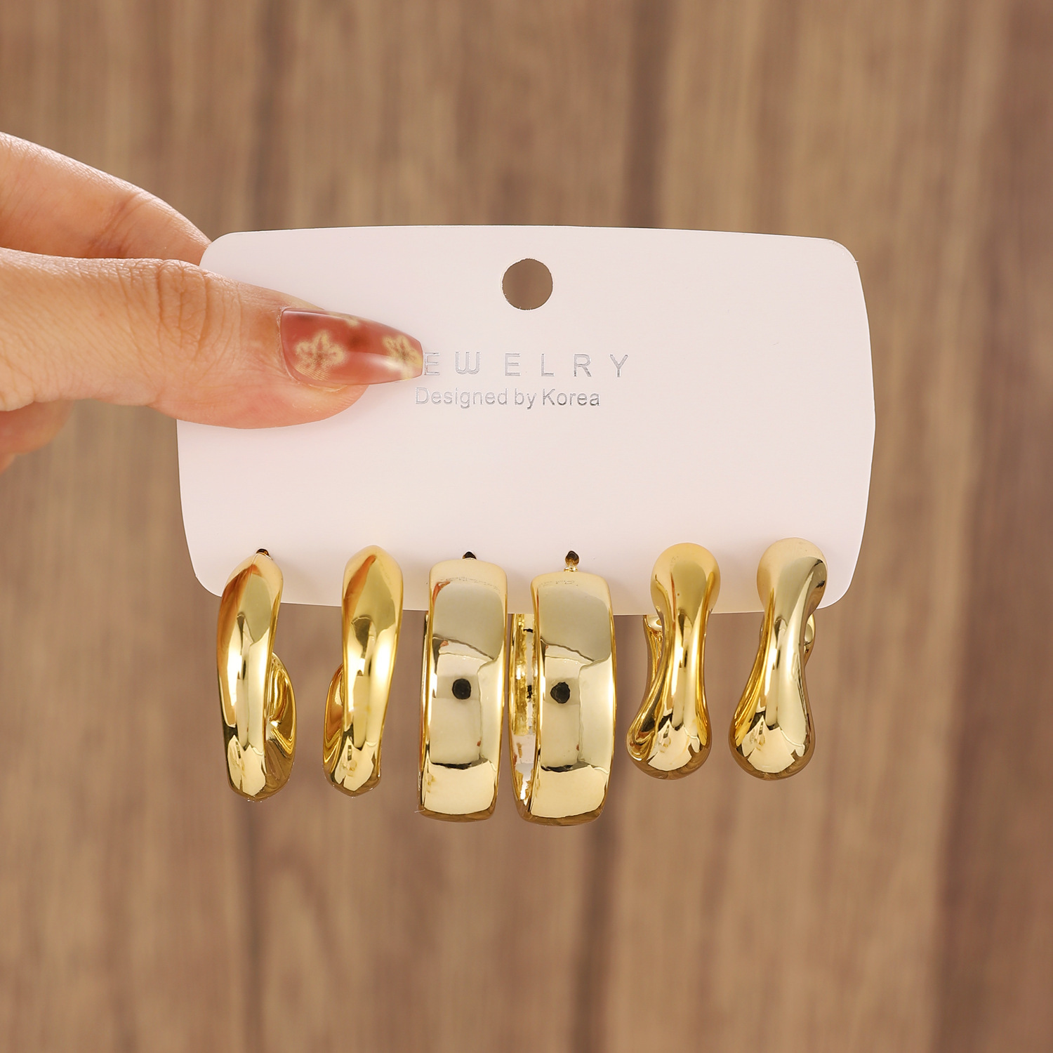 European and American Cross-border Retro Fashion Exaggerated C- shaped Earrings suit Distinctive Earrings Gold silver CCB Card Earrings for Women