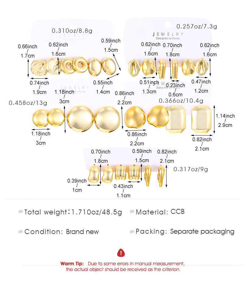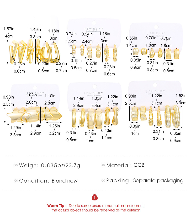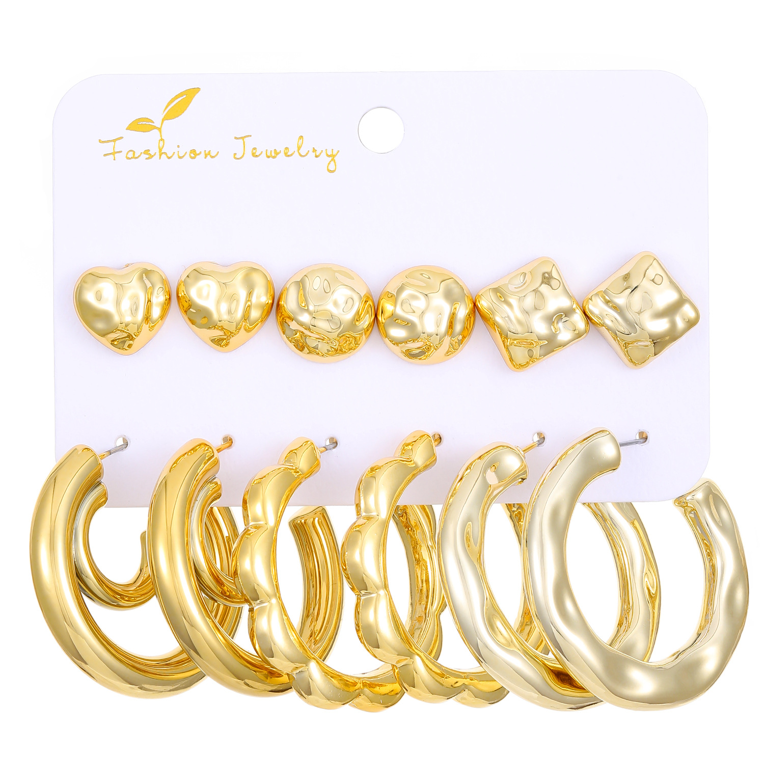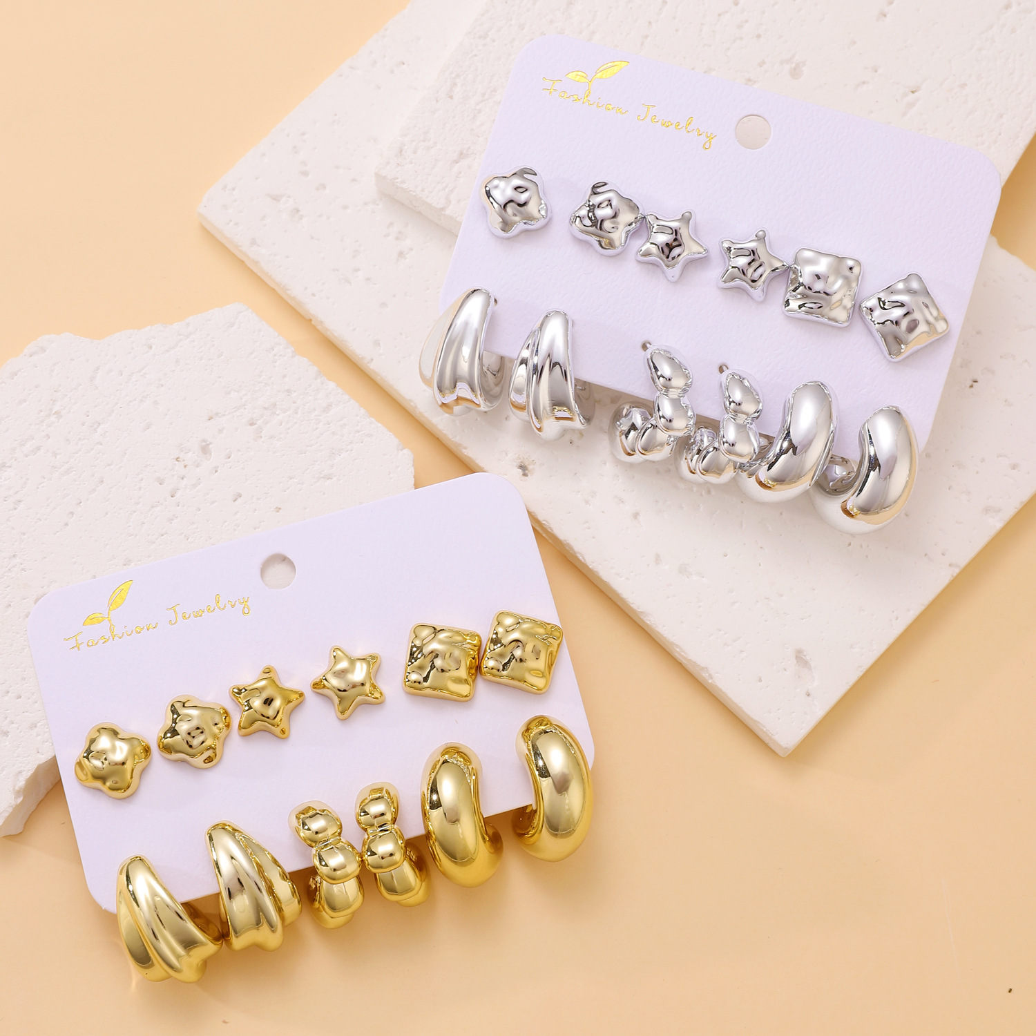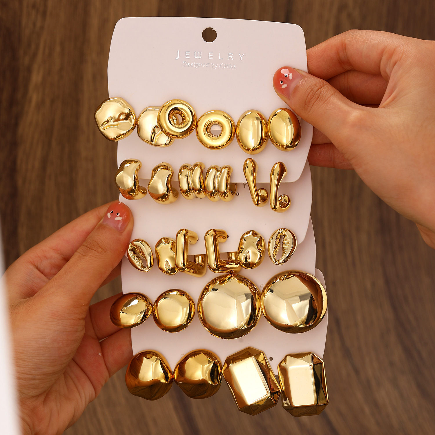 European and American Cross-border Retro Fashion Exaggerated C- shaped Earrings suit Distinctive Earrings Gold silver CCB Card Earrings for Women